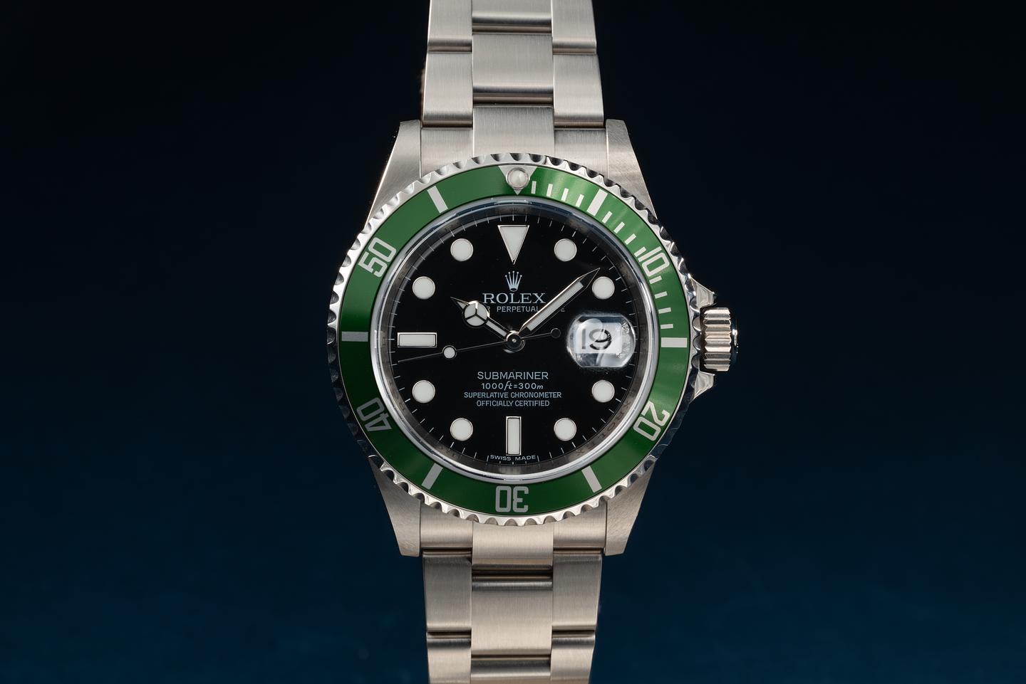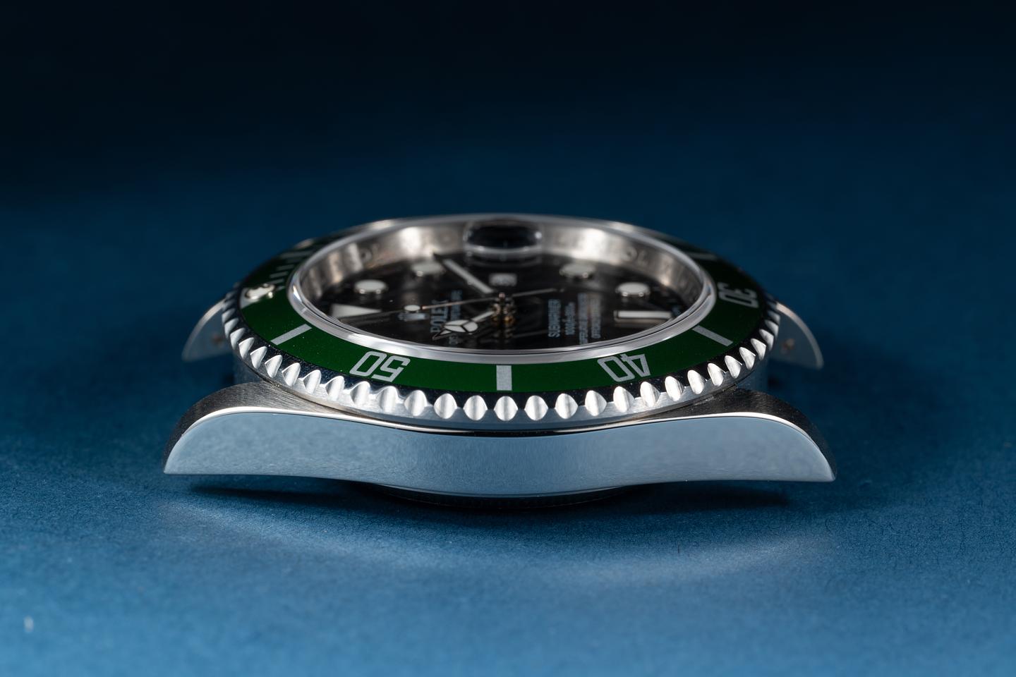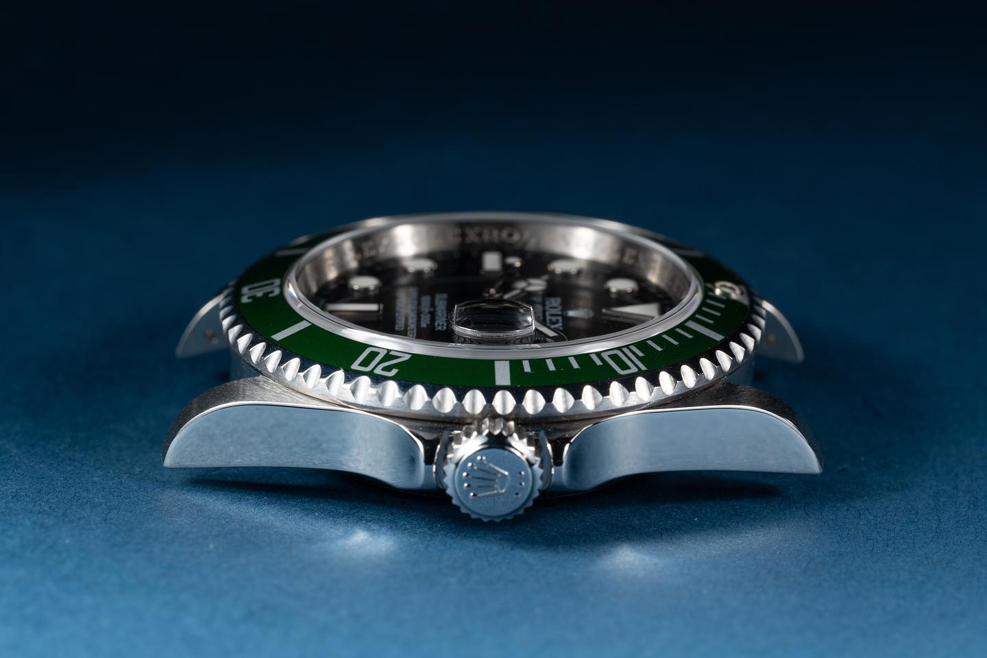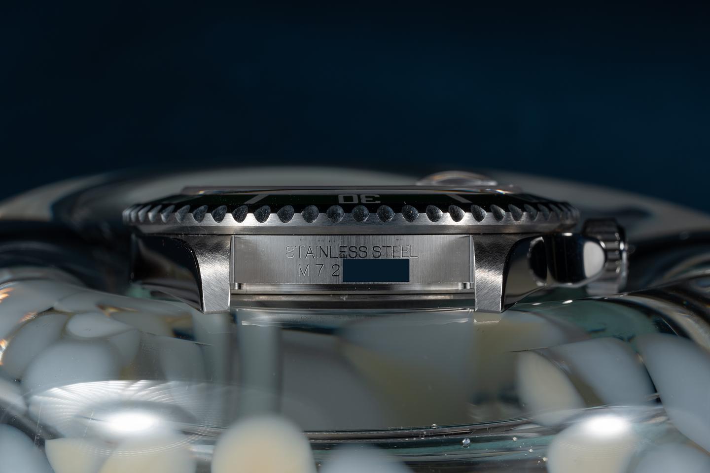 Case: The thick and even case is excellent showing only very light wear from use. The green bezel insert is also in excellent condition showing only light wear from use.