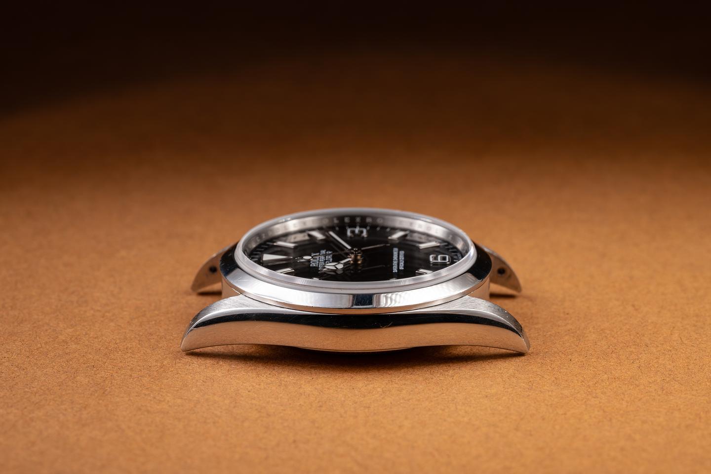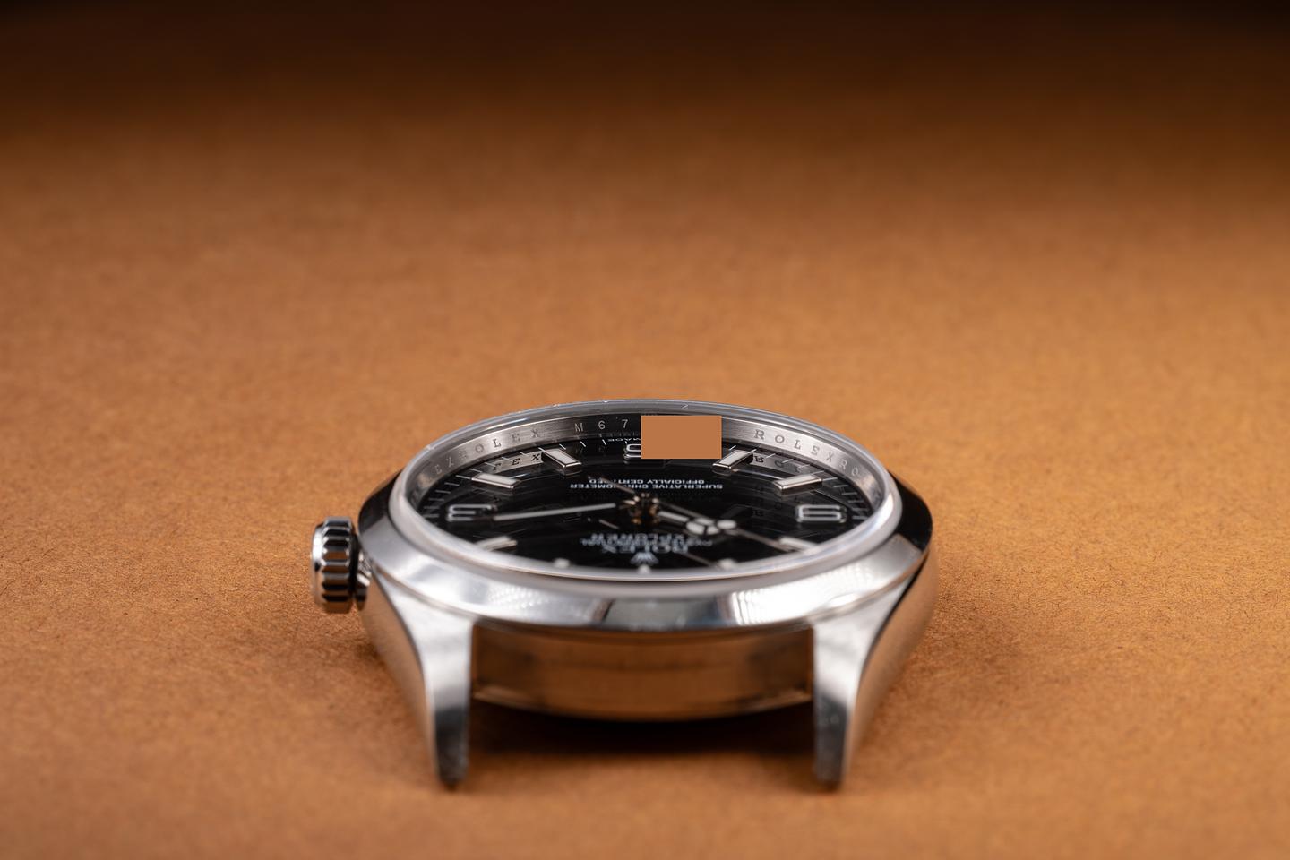 Case: The thick and sharp case is excellent, showing only very light wear from use. The smooth stainless bezel is also in excellent condition, showing no visible wear.