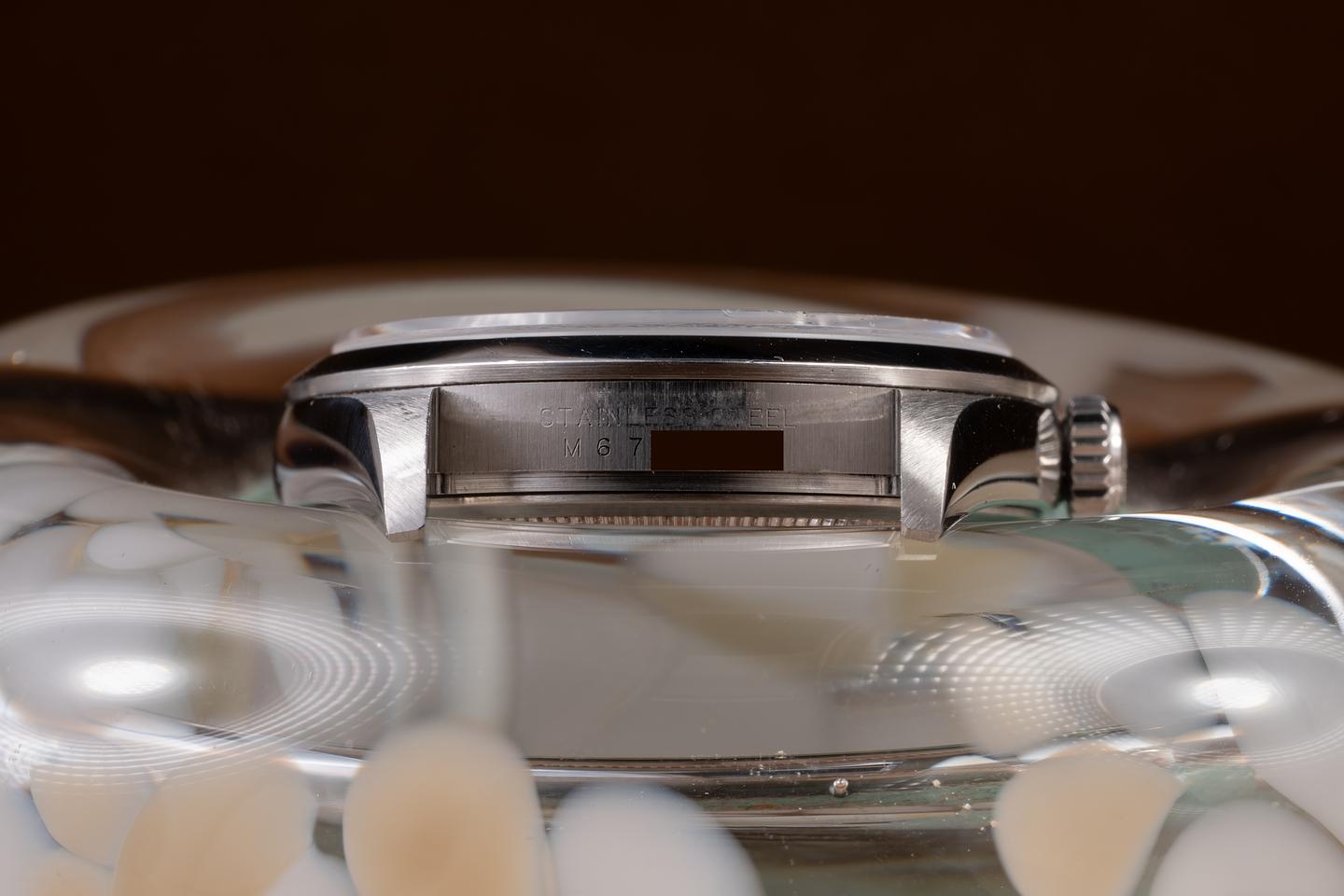 Dial: The glossy black 3, 6, 9 dial is excellent, showing no visible wear. The original factory hands are matching.