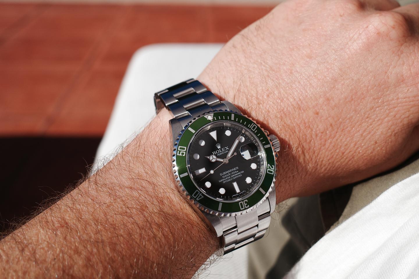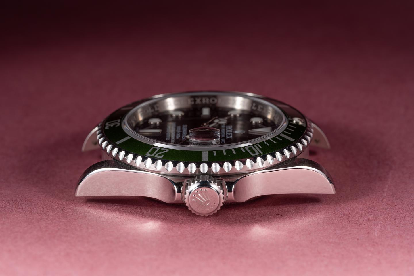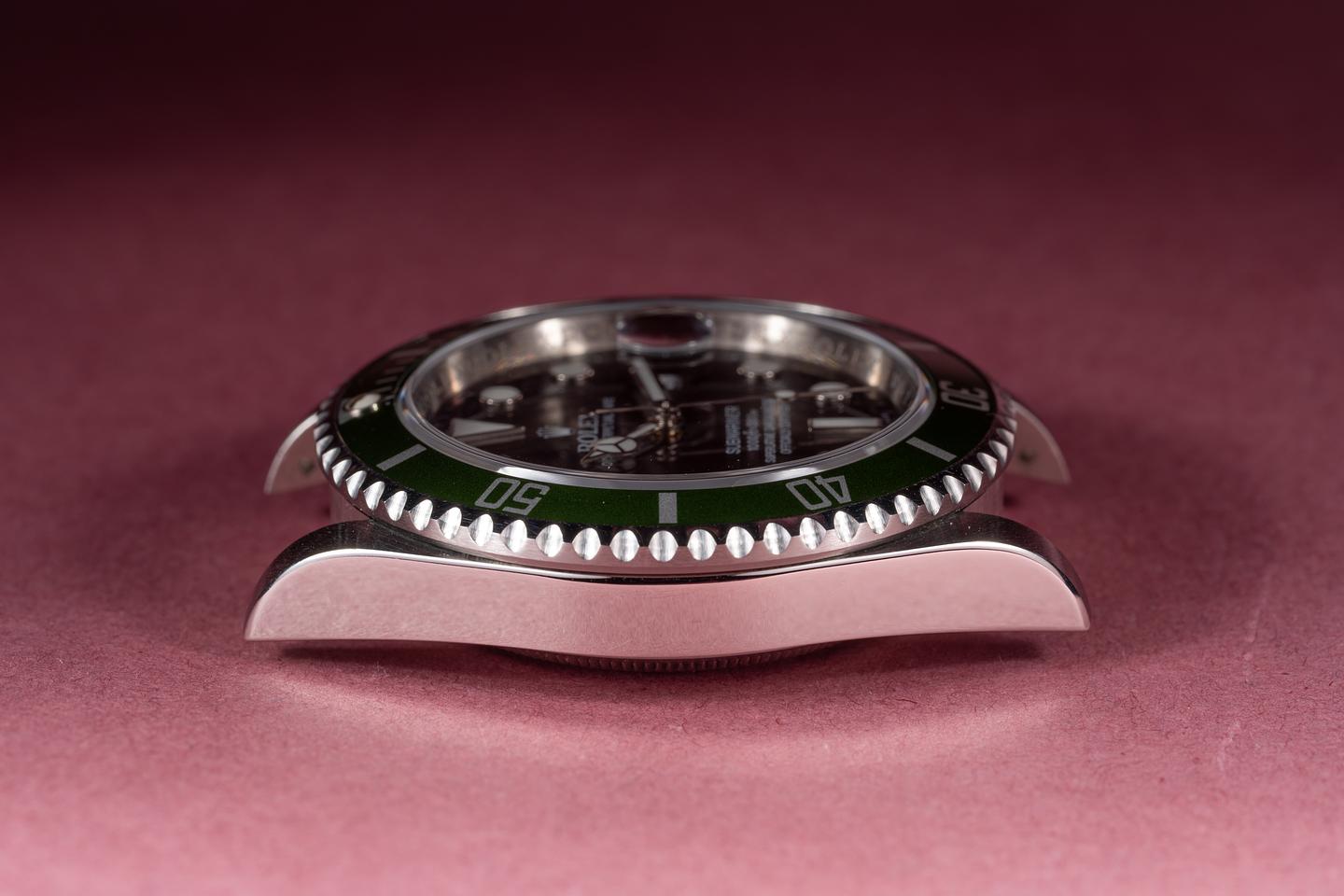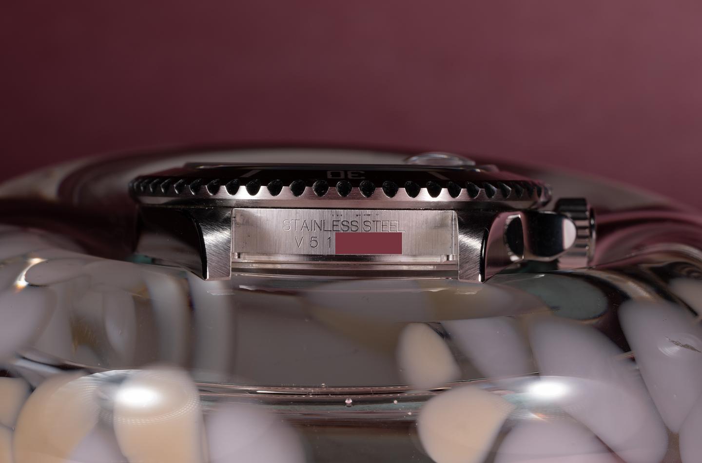 Case: The no holes case is excellent showing only light wear from use. The green bezel is also in excellent condition showing only very light wear from use