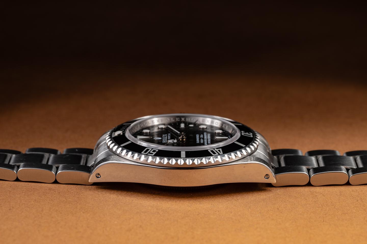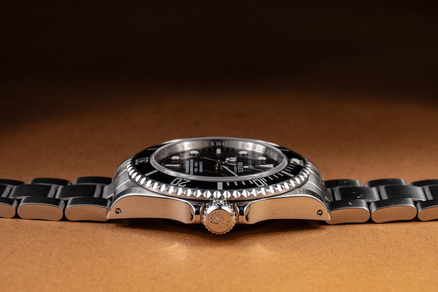 Case: Excellent case showing sharp, prominent bevels and only very light wear. The black bezel insert is also in excellent condition, showing only light wear from use.