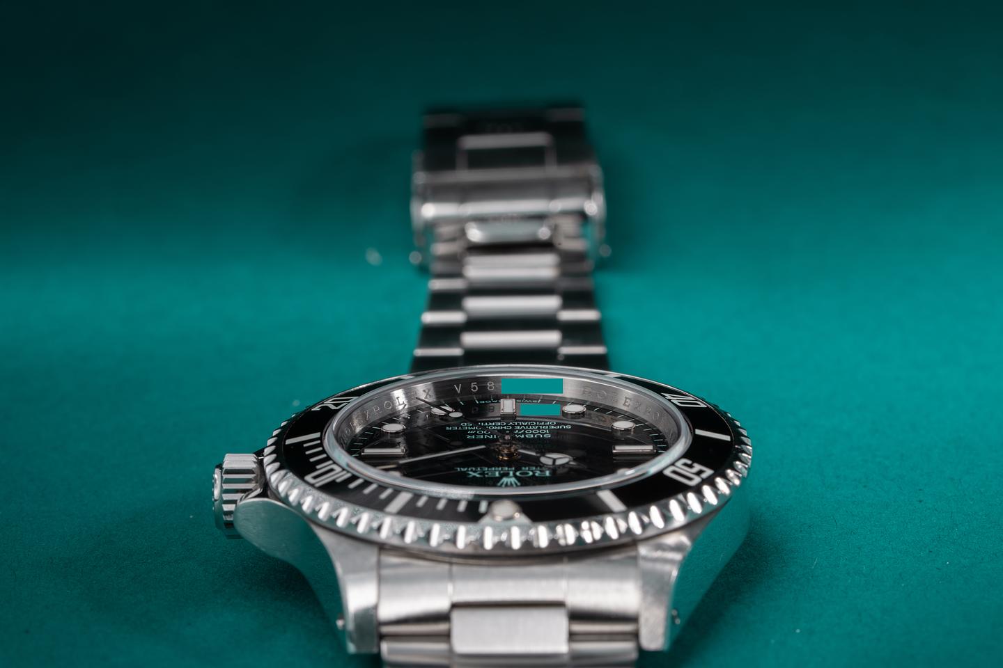 Case: The excellent case has recently been polished showing sharp prominent bevels and only light wear from use. The black bezel insert is also in excellent condition showing only light wear from use.
