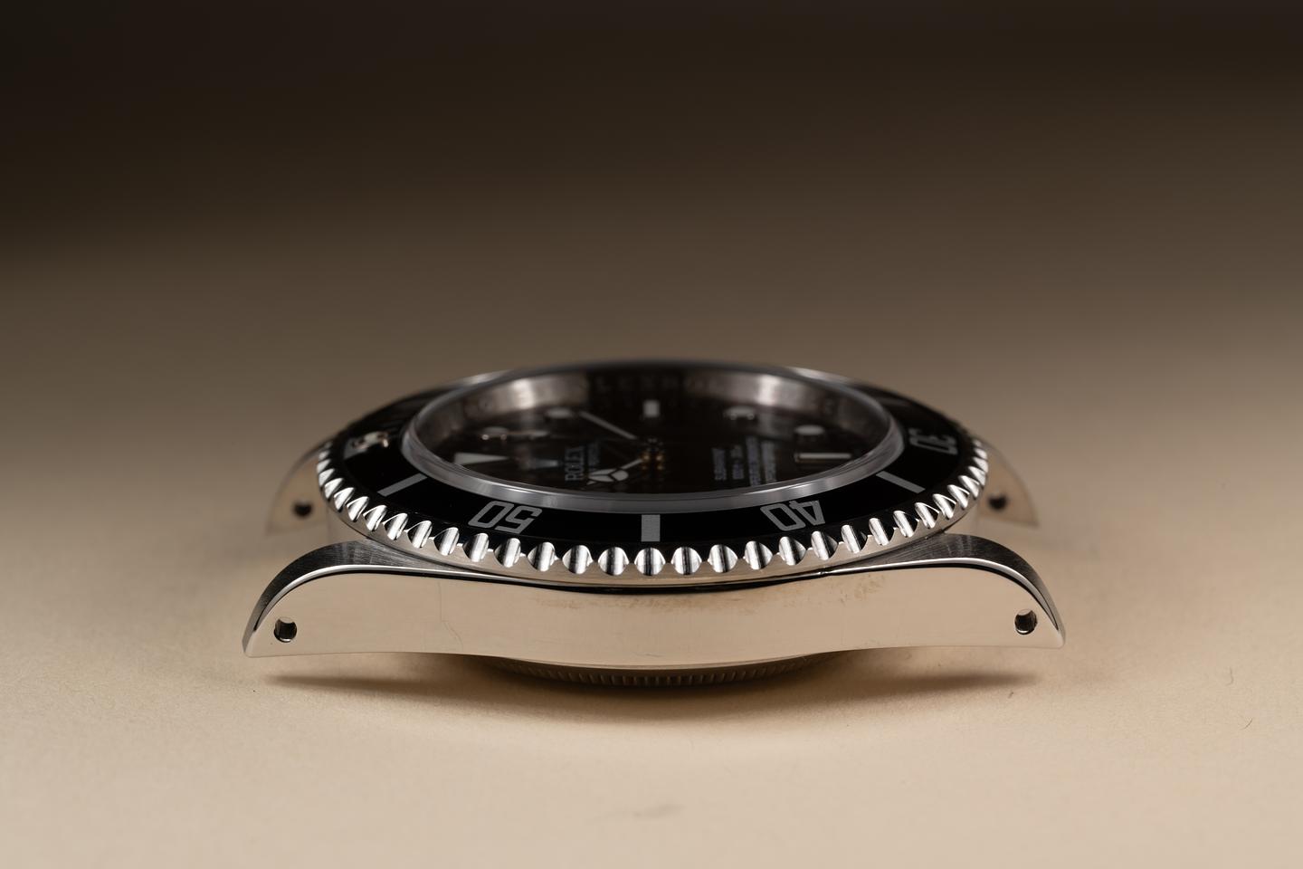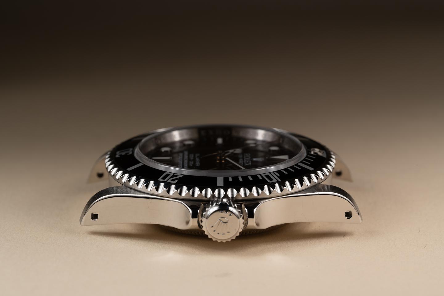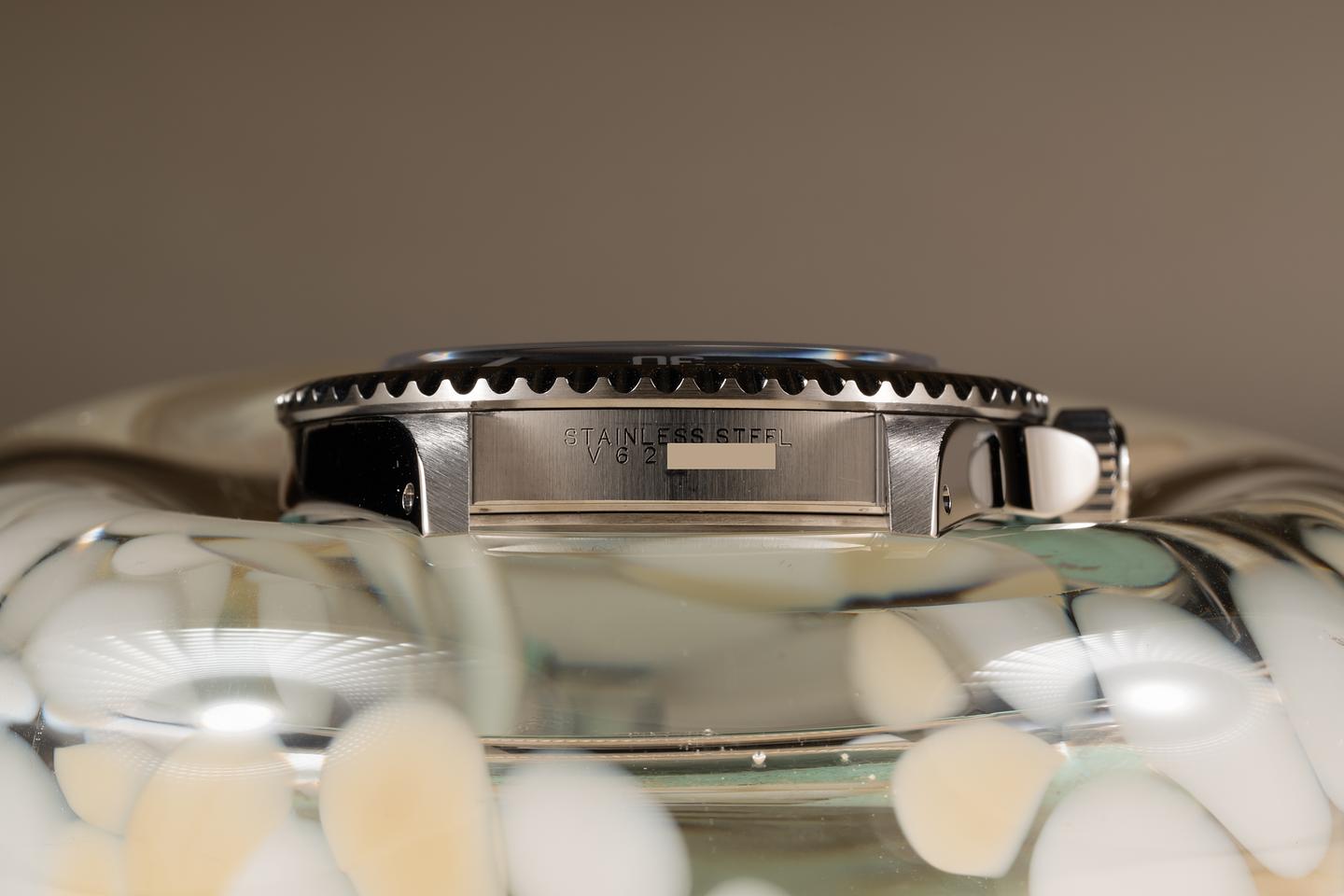 Case: The thick sharp case is excellent showing only very light wear from use. The black bezel insert is also in excellent condition showing only very light wear.
