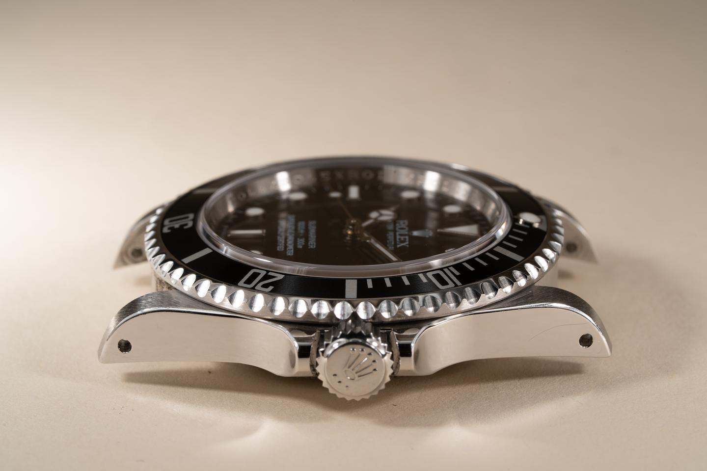 Case: The thick and even case is excellent showing prominent bevels and only light wear from use. The black bezel insert is also in excellent condition and shows only very light wear from use.
