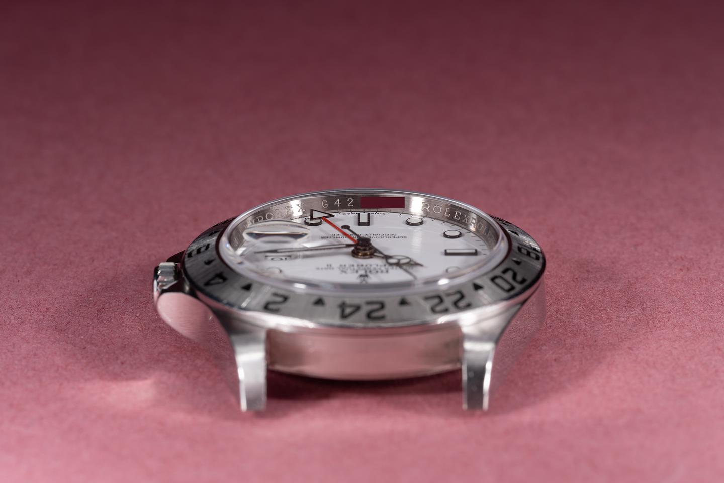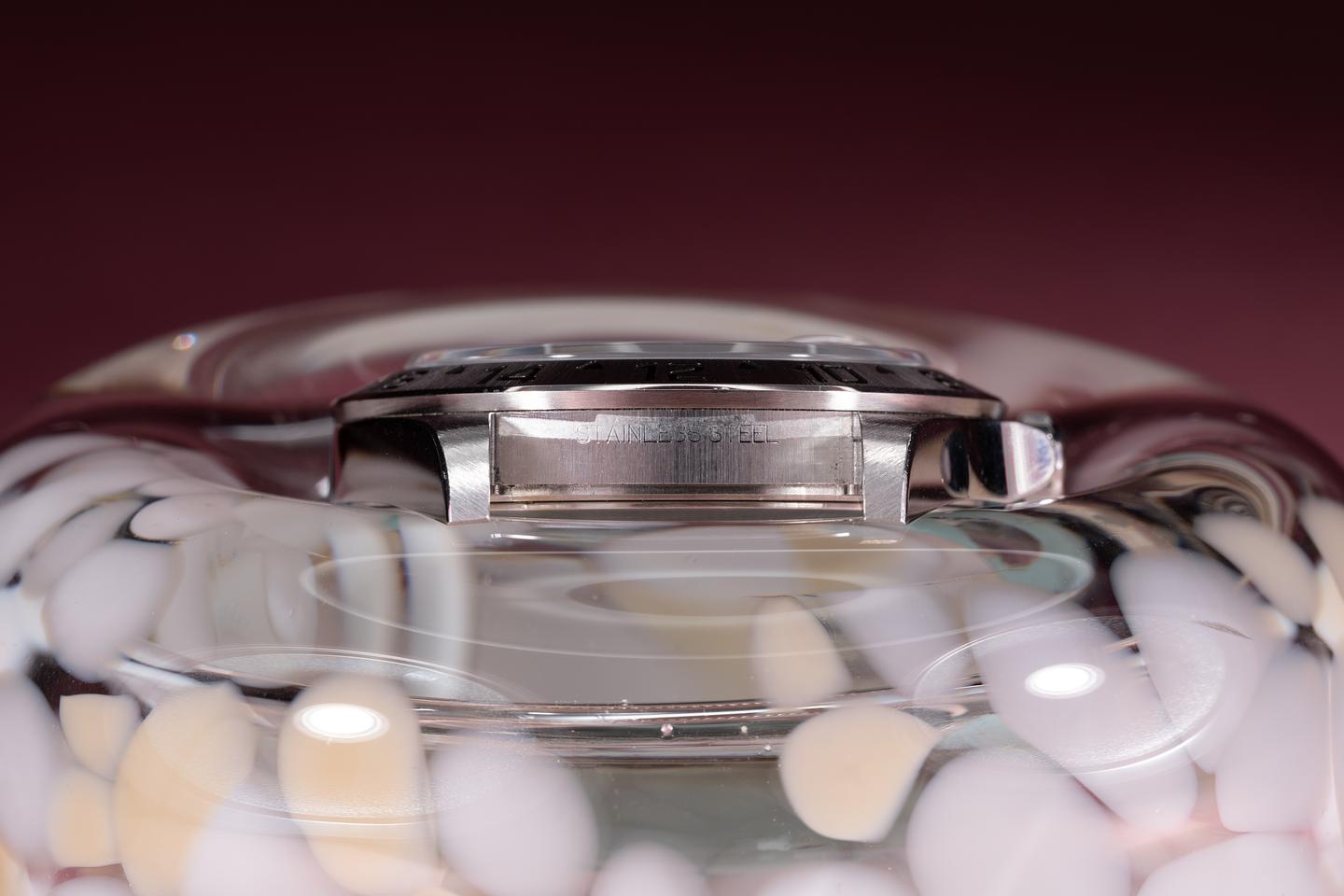 Case: The unpolished no holes case is excellent showing only light wear from use. The stainless bezel is also unpolished showing a sharp well defined factory sunburst finish.