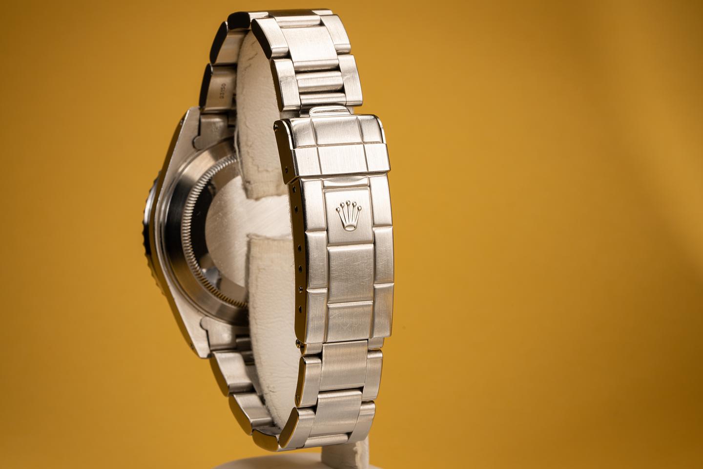 Case: This thick sharp case is in excellent condition and shows average wear for its age. The black bezel insert is excellent condition and shows light wear from use.