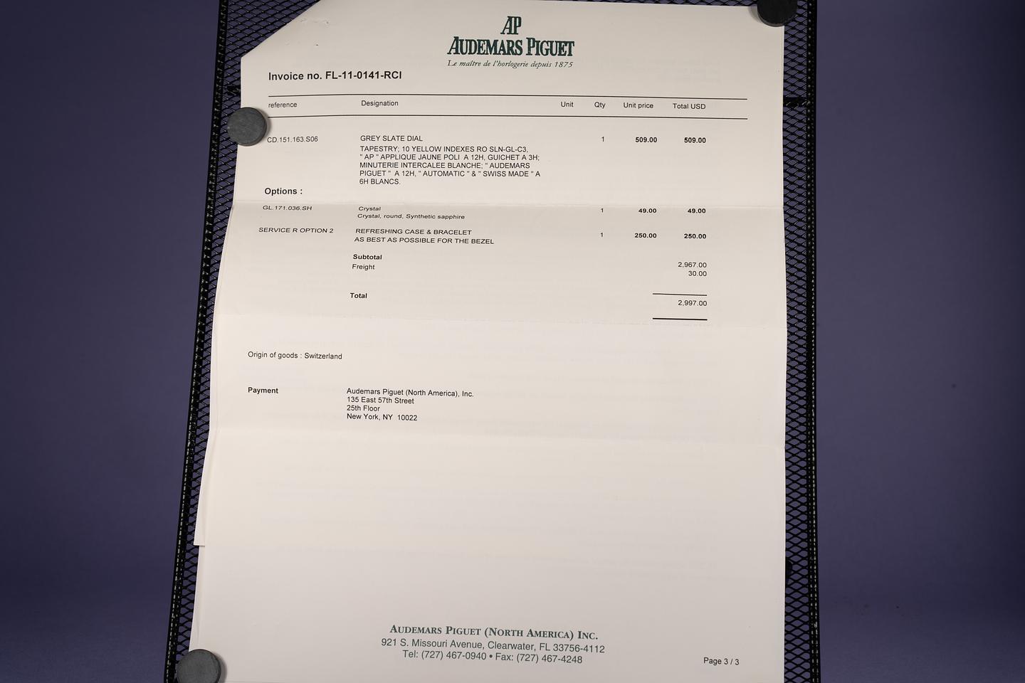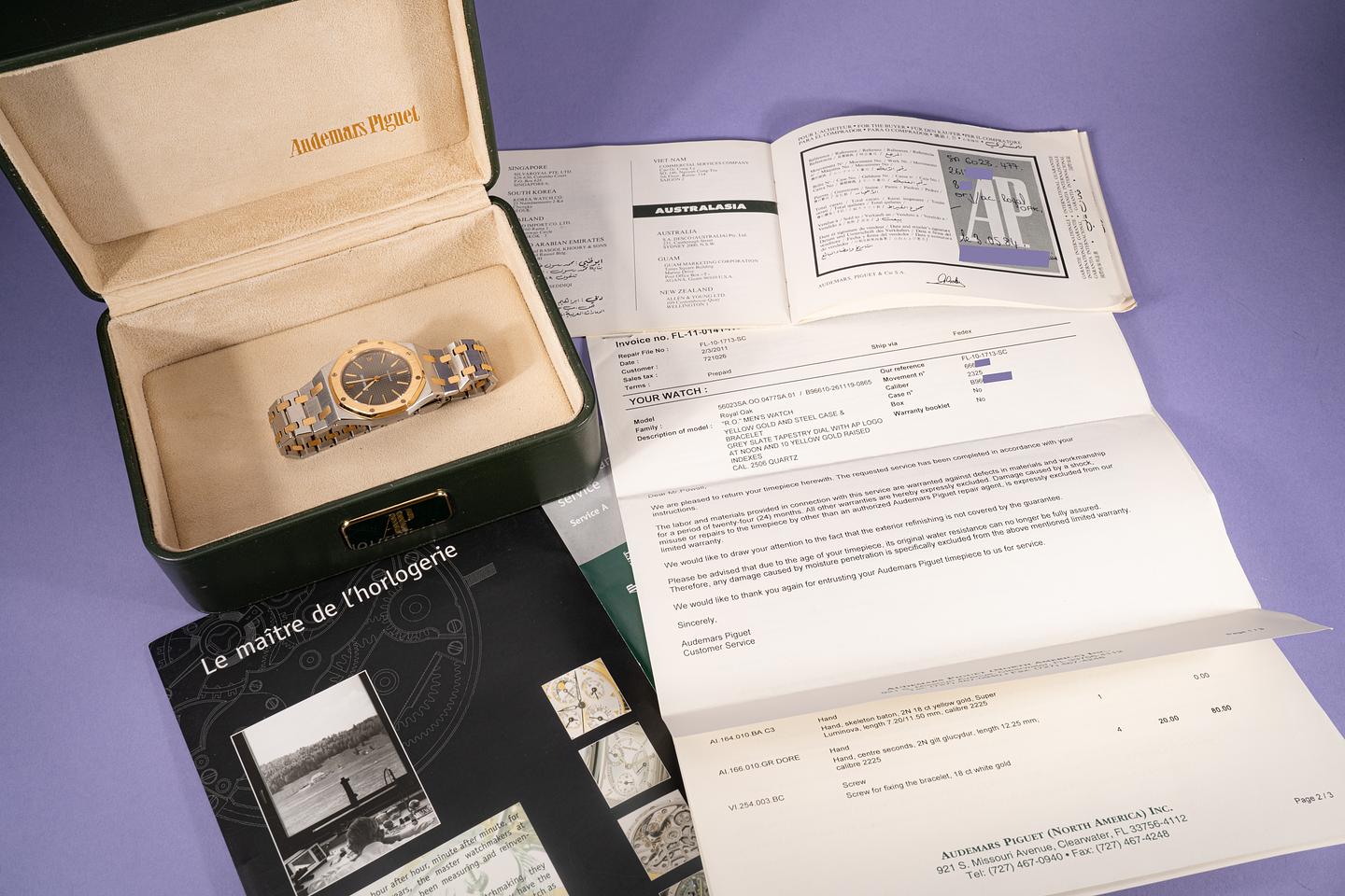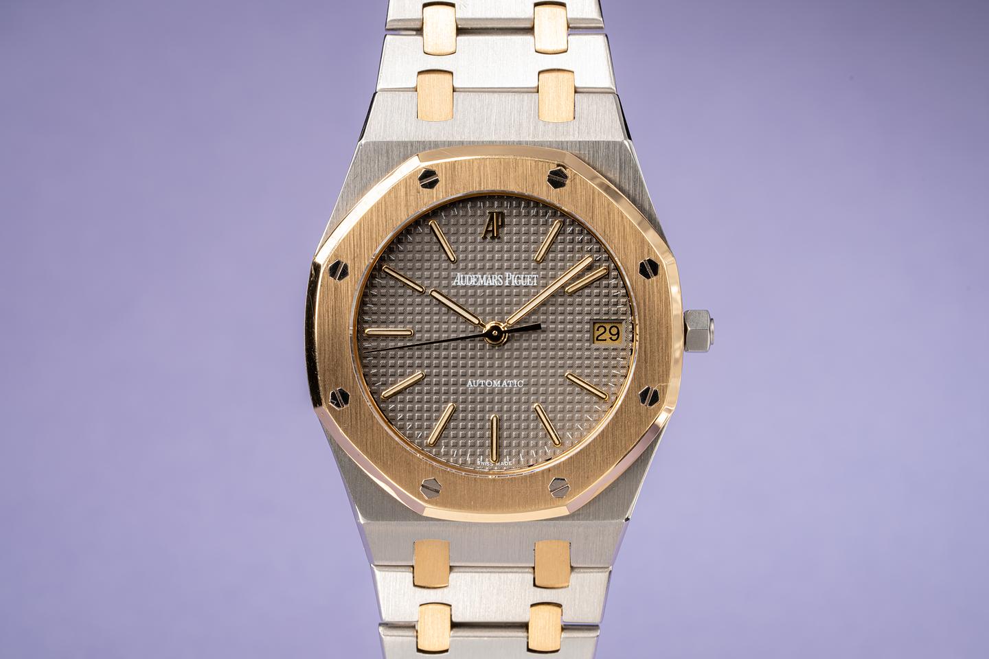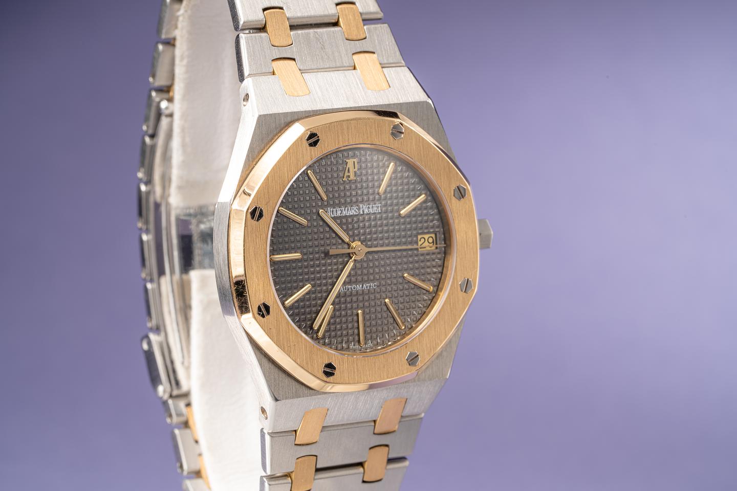 Notes Starting its life off as a quartz watch this AP was sent back to the factory by its previous owner to be rebuilt with an AP 2325 automatic movement, a fresh slate automatic grey tapestry dial, and new matching hands.