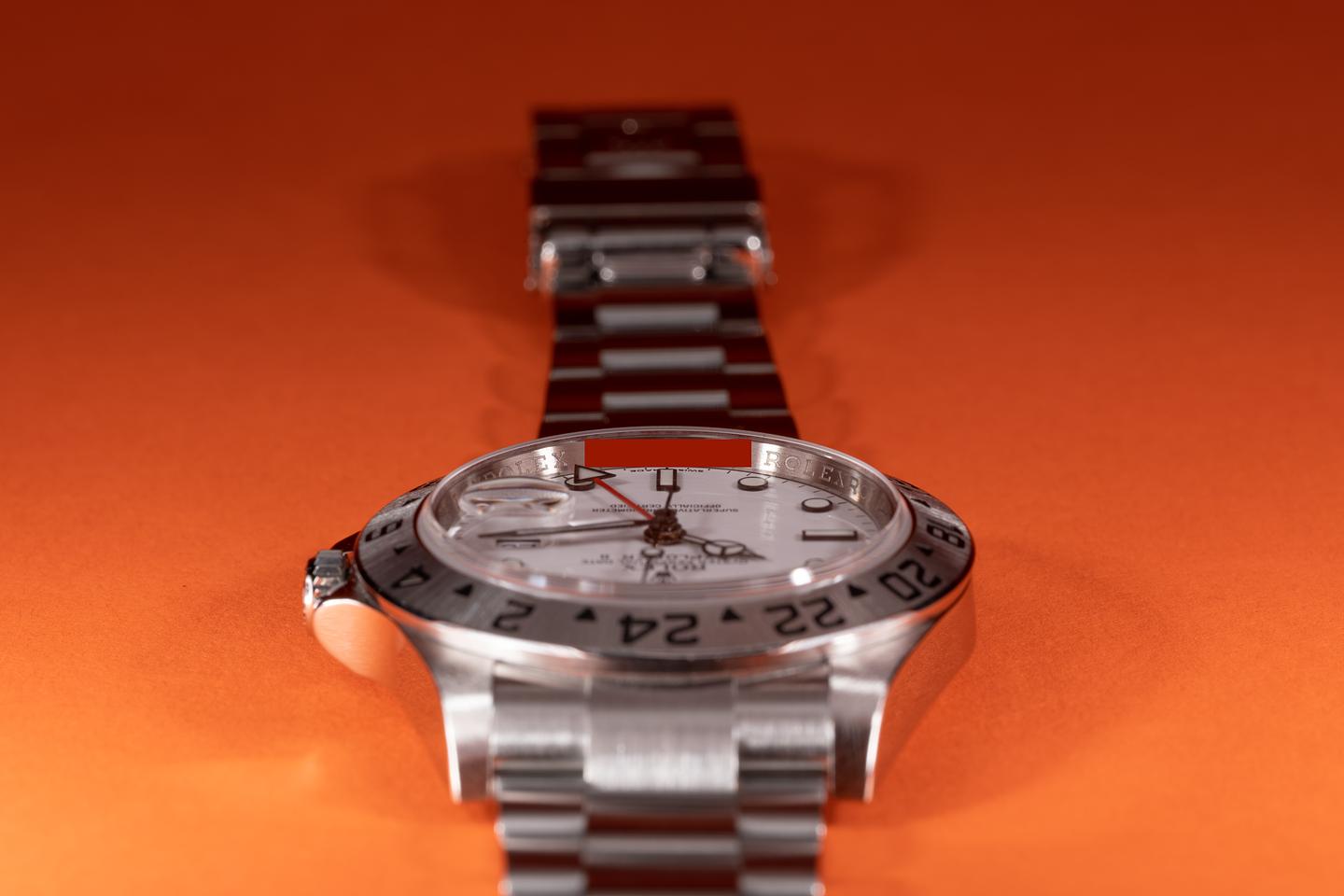 Case: The thick and even no holes case appears to be unpolished showing only very light wear from use. The stainless bezel is also in excellent condition showing a sharp well defined factory sunburst finish and only very light wear from use.