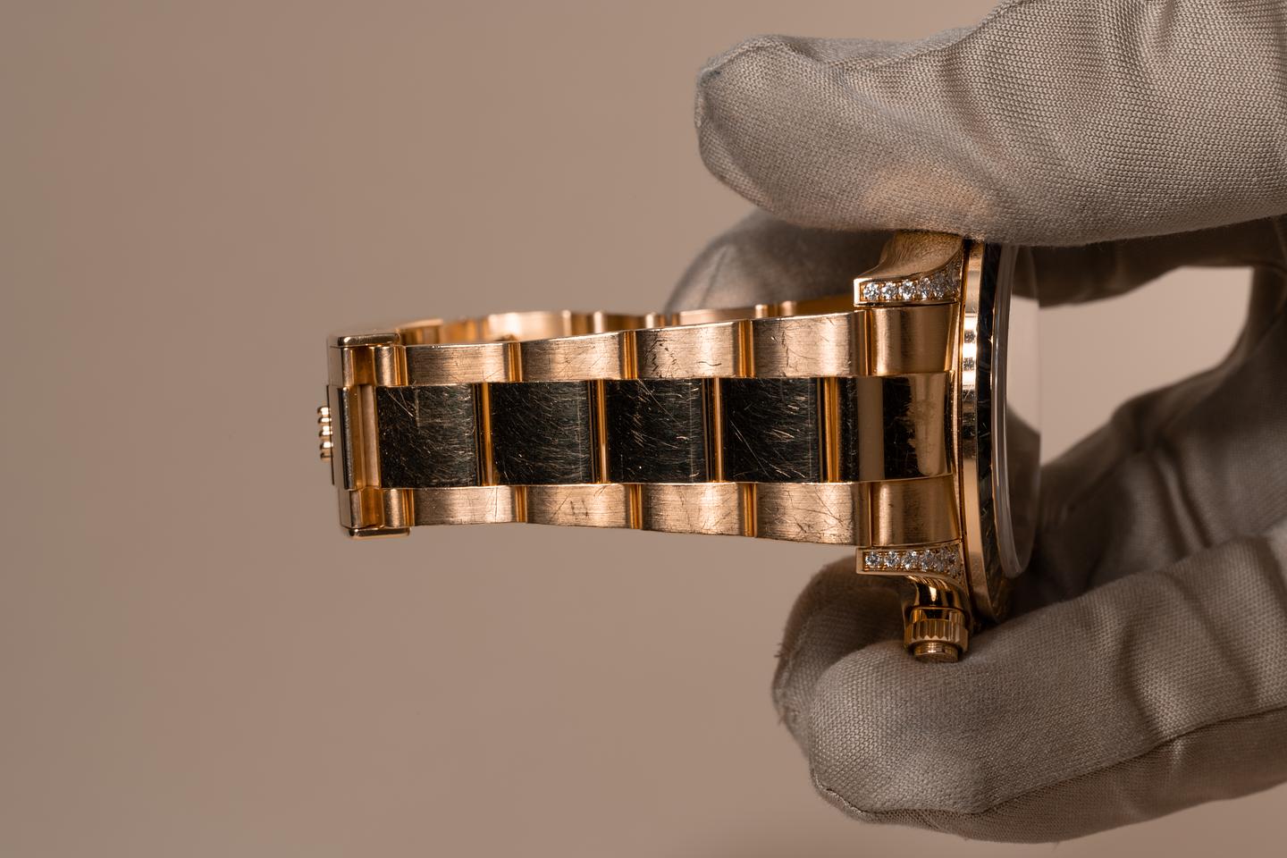 Bracelet: The 11.5 link 18K yellow gold Oyster bracelet is excellent showing no perceivable stretch and some light wear from use. There is an additional link included with the watch.