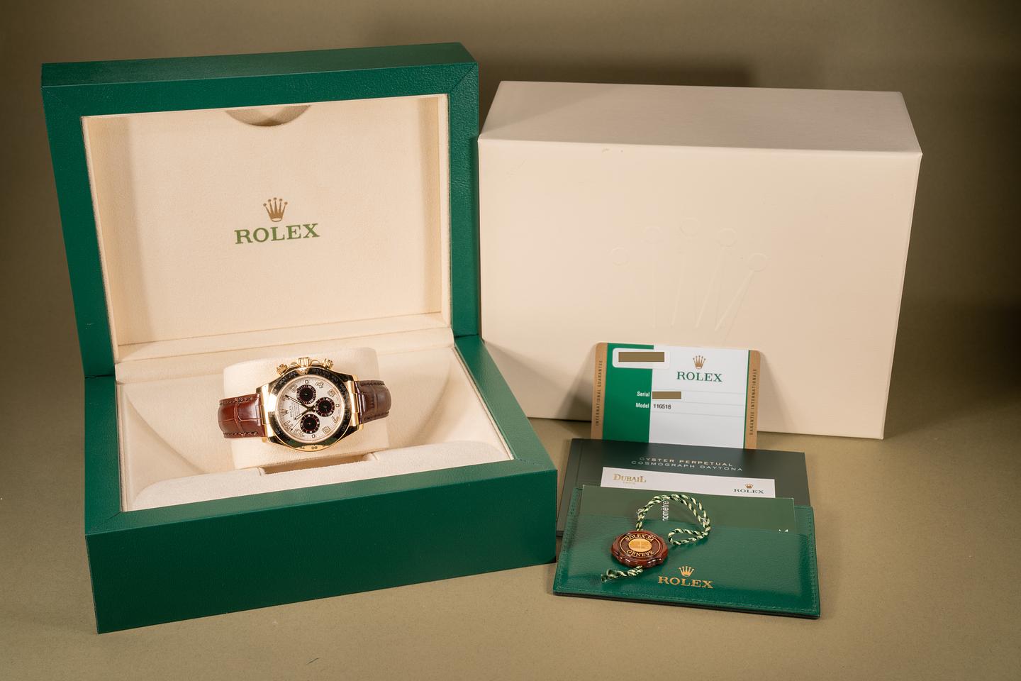Case: The 18k yellow gold case is excellent showing light wear overall. The left side of the case has one slightly more prominent scratch visible. The 18k yg bezel is also in excellent condition and shows only very light wear.