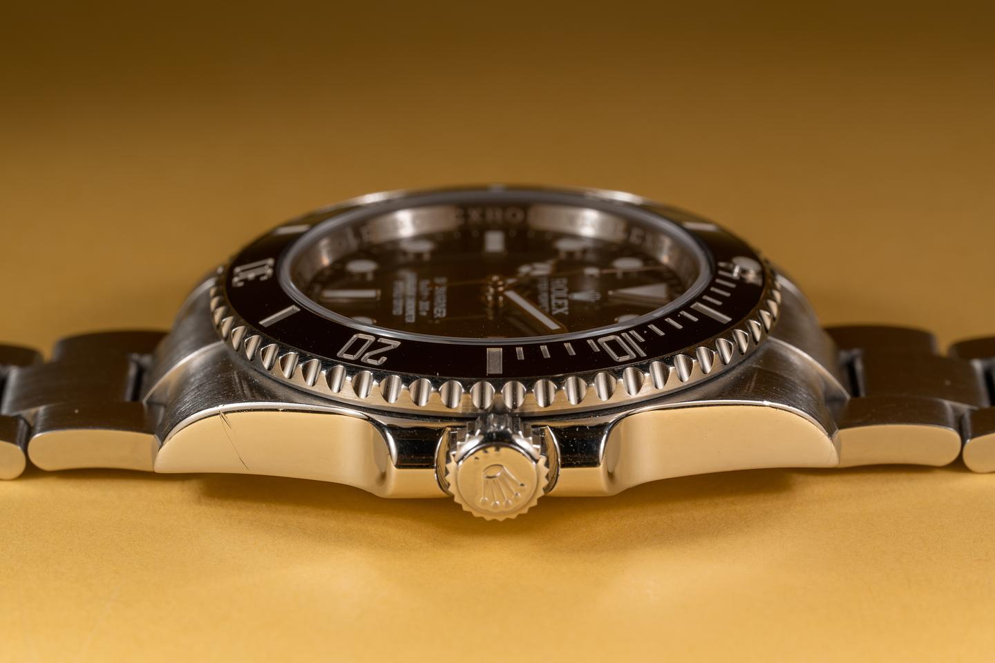 Case: The previously polished case is very good showing overall light wear from use. There is a scratch on the side of the 5 o'clock lug. The black ceramic bezel is also in excellent condition showing no visible wear.