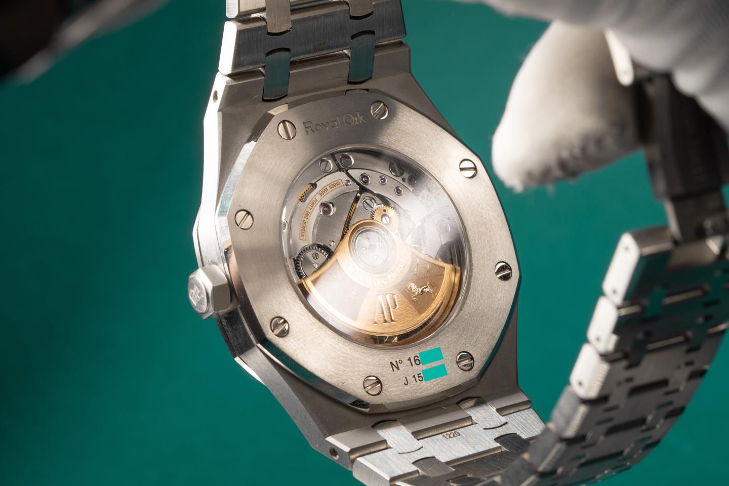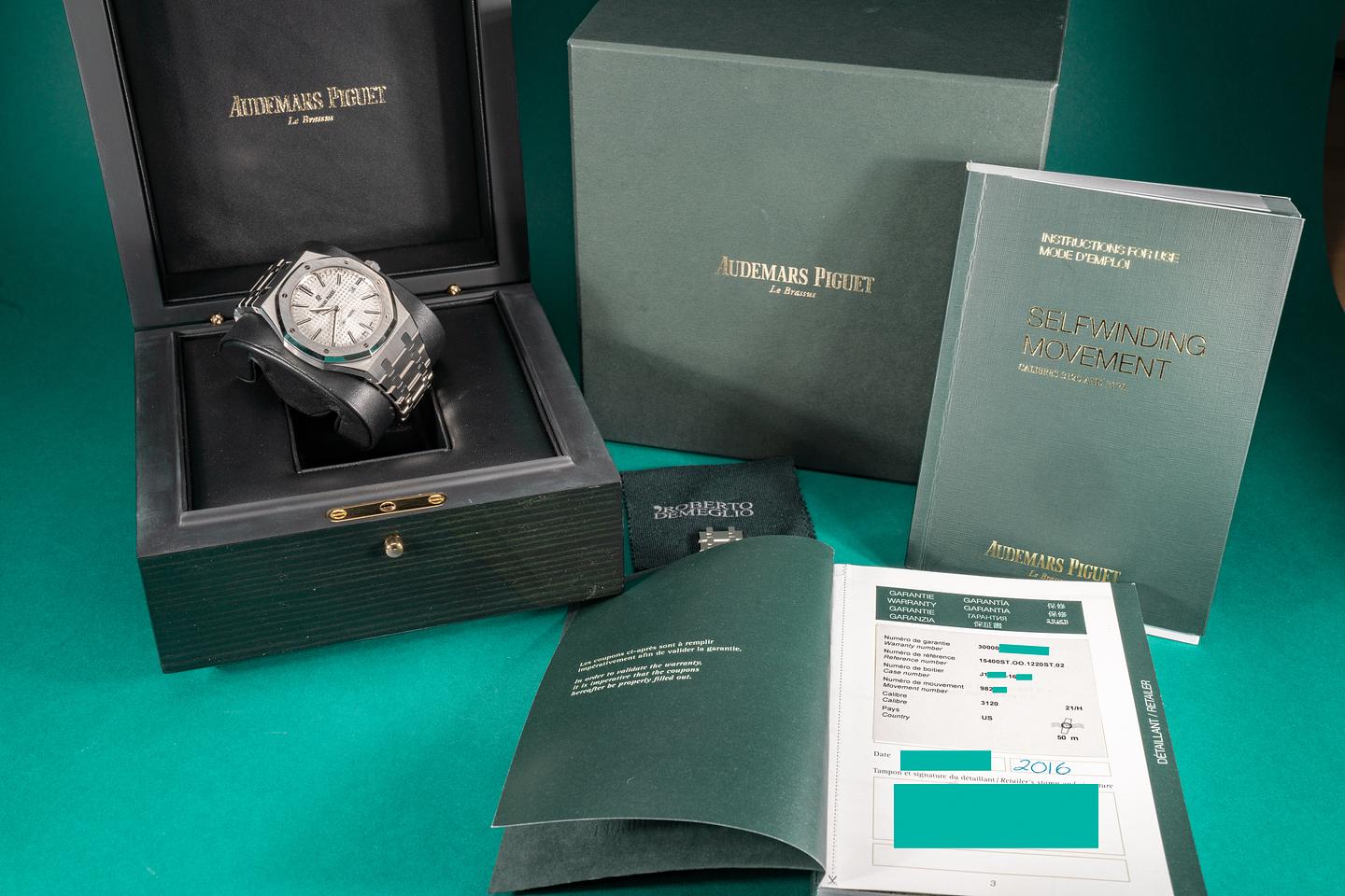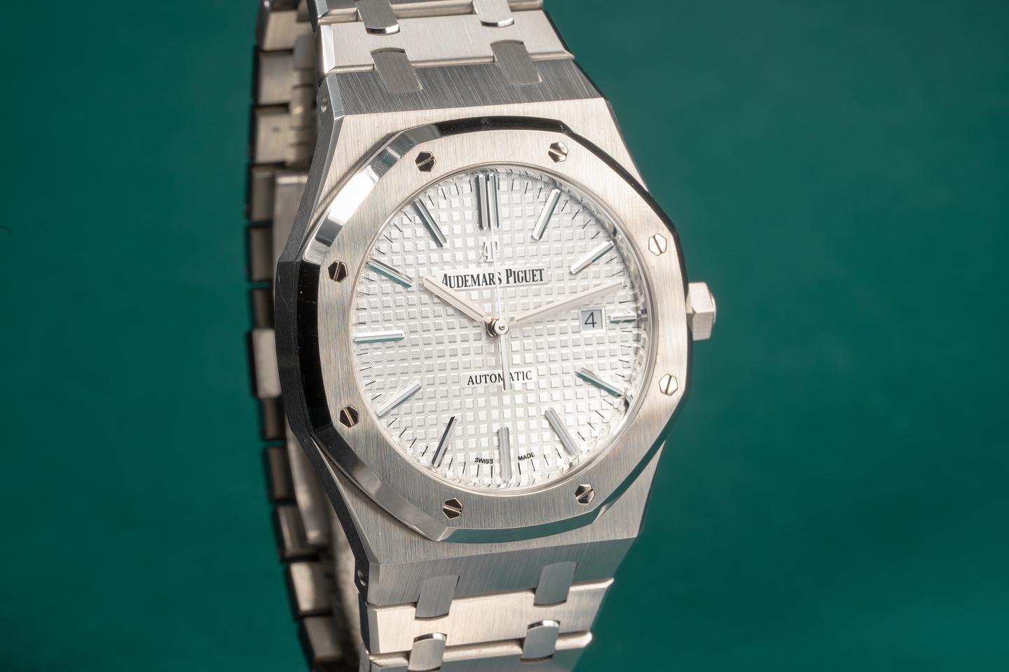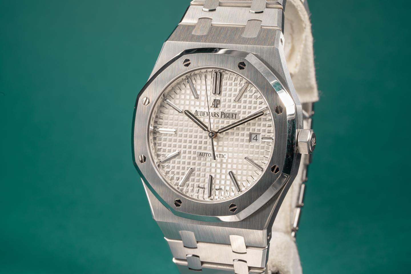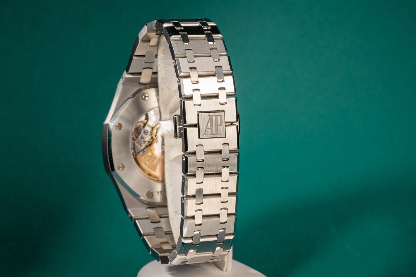 Dial: The silver-toned “Grande Tapisserie” dial is flawless with applied white gold markers. The original Royal Oak hands are matching.