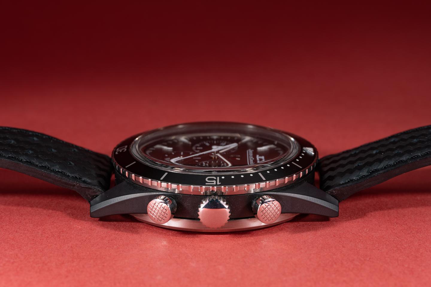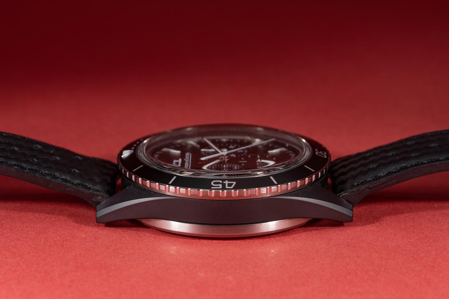 Case: The 44mm cermet and titanium case is excellent showing only very light wear. The black bezel insert is also in excellent condition showing only very light wear from use.