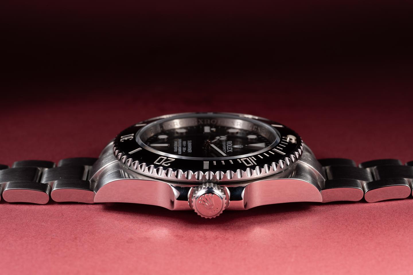Case: The thick, sharp, and even case is excellent showing only light wear from use. The black ceramic bezel is also in excellent condition sowing no visible wear.