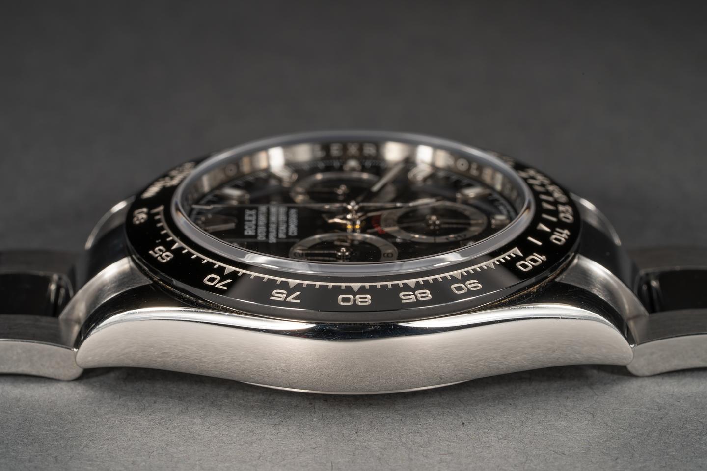 Case: The case is excellent and shows light wear from use. The black ceramic bezel is also excellent and shows only very light wear.