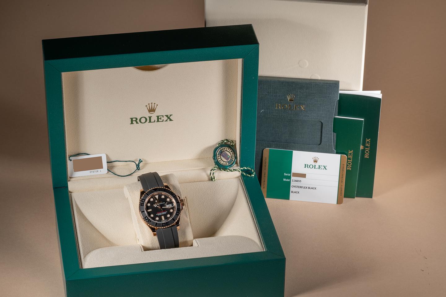 Bracelet: The Rolex Oysterflex strap is excellent showing only very light wear. The 18K everose clasp is also in excellent condition showing only very light wear.