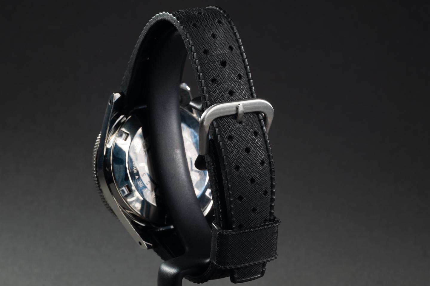 Bracelet: The aftermarket black rubber strap is excellent, showing only very light wear from use. Also included with the watch is a Seiko stainless-steel bracelet with 13 links.