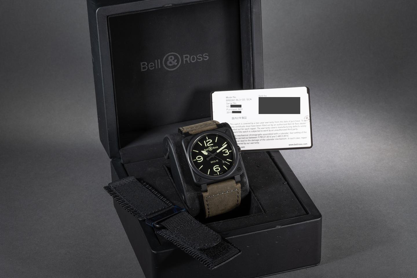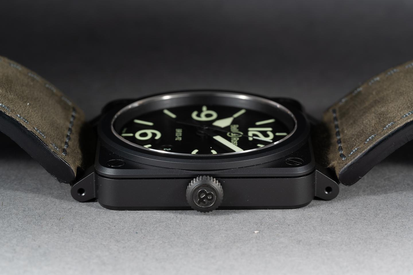 Bracelet: The green suede Bell & Ross strap is excellent showing light wear.