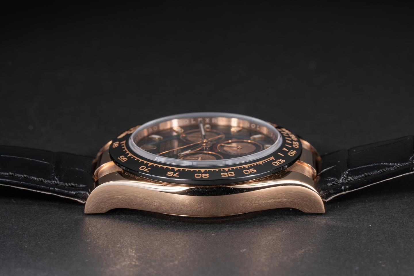 Case: The 18k everose gold case is excellent showing only light wear from use. The black ceramic bezel is also in excellent condition showing only extremely light wear from use.