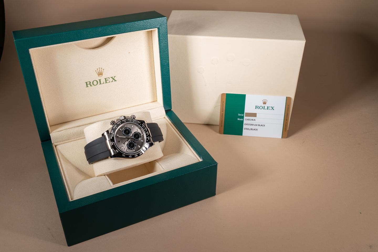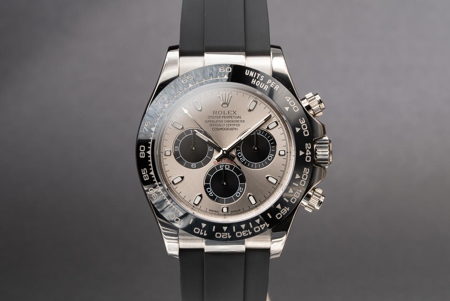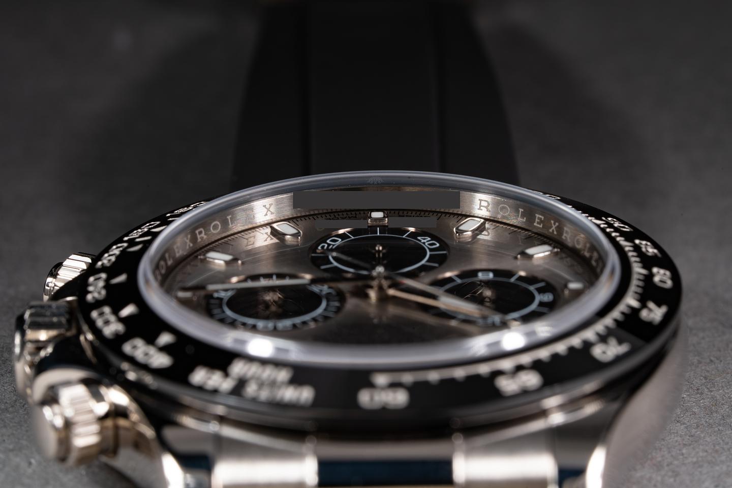 Bracelet: The Rolex Oysterflex brand is excellent with a matching 18k white gold buckle that shows some light wear from use.