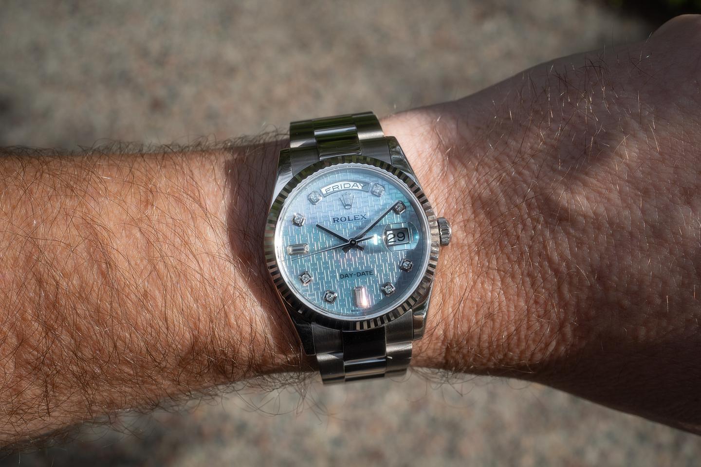Bracelet: The 12 full & 3 half-link 18K white gold Oyster bracelet is excellent, showing no perceivable stretch.