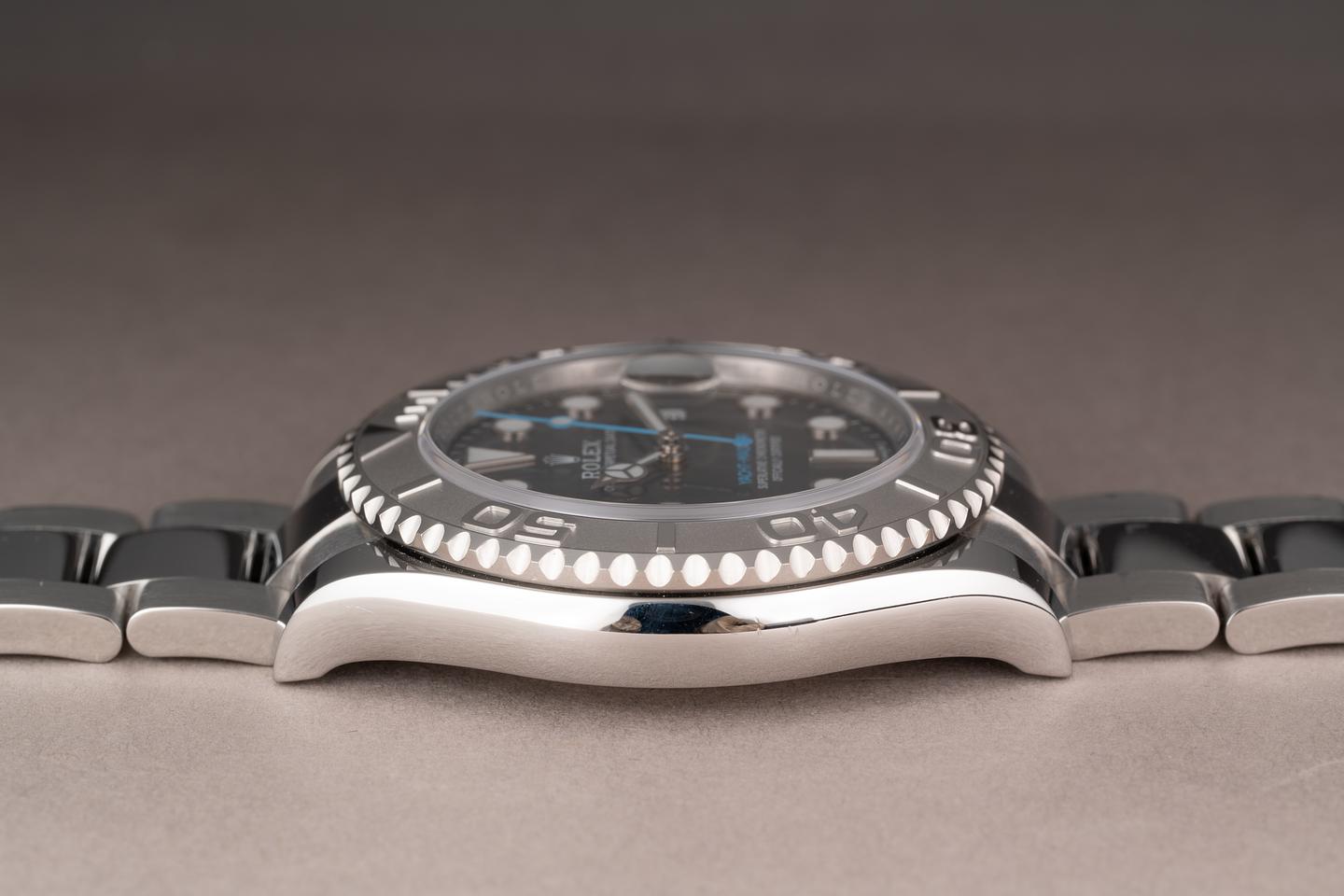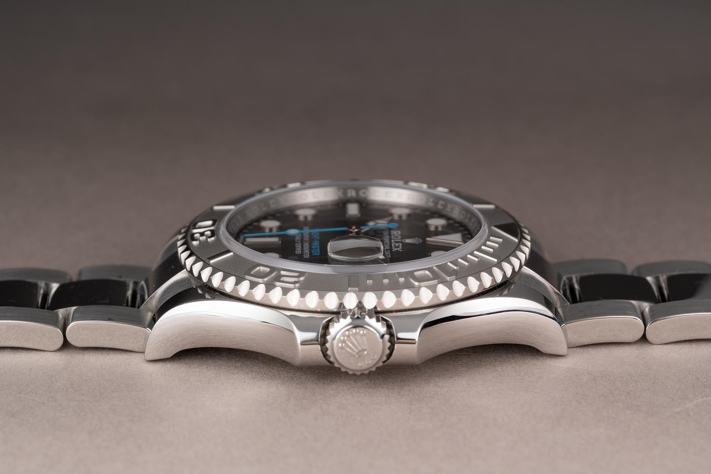Case: The unpolished Oystersteel case is excellent showing only very light wear from use. The platinum bezel is also in excellent condition showing only very light wear from use.