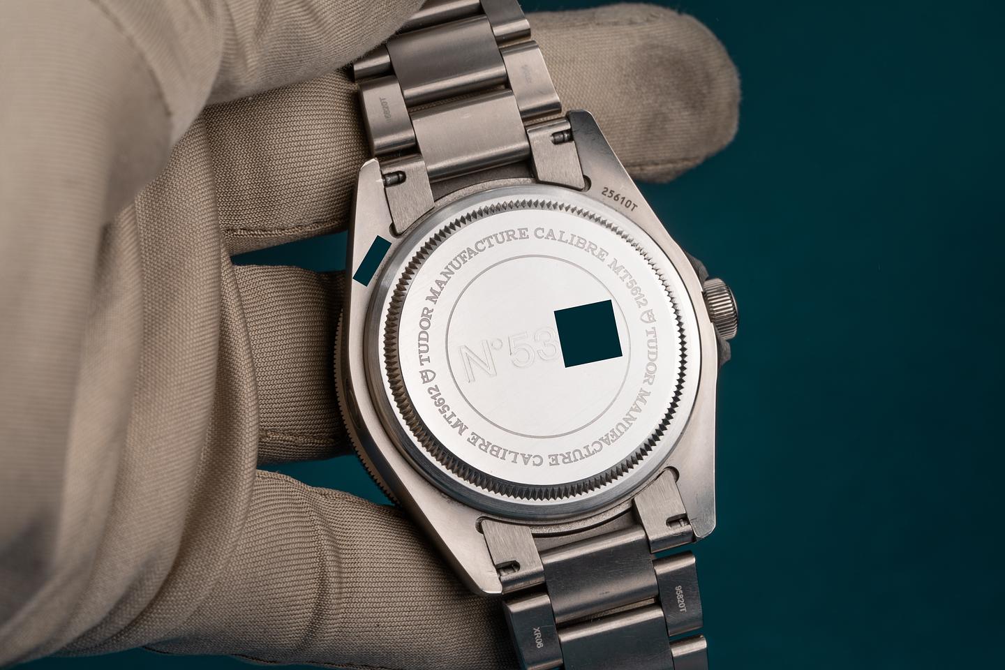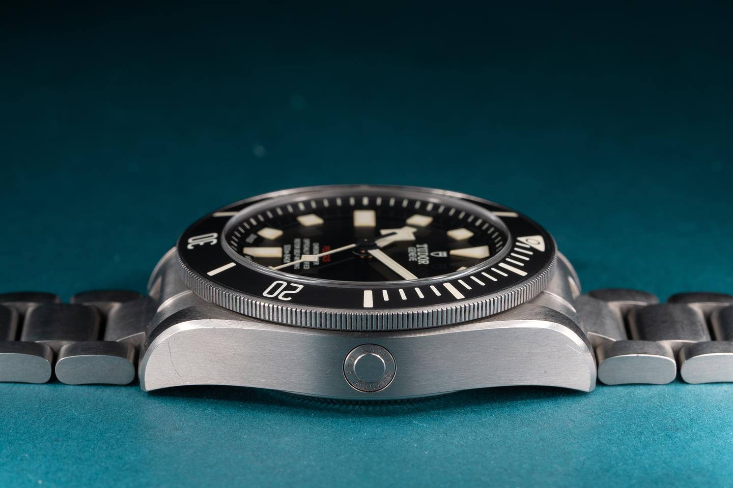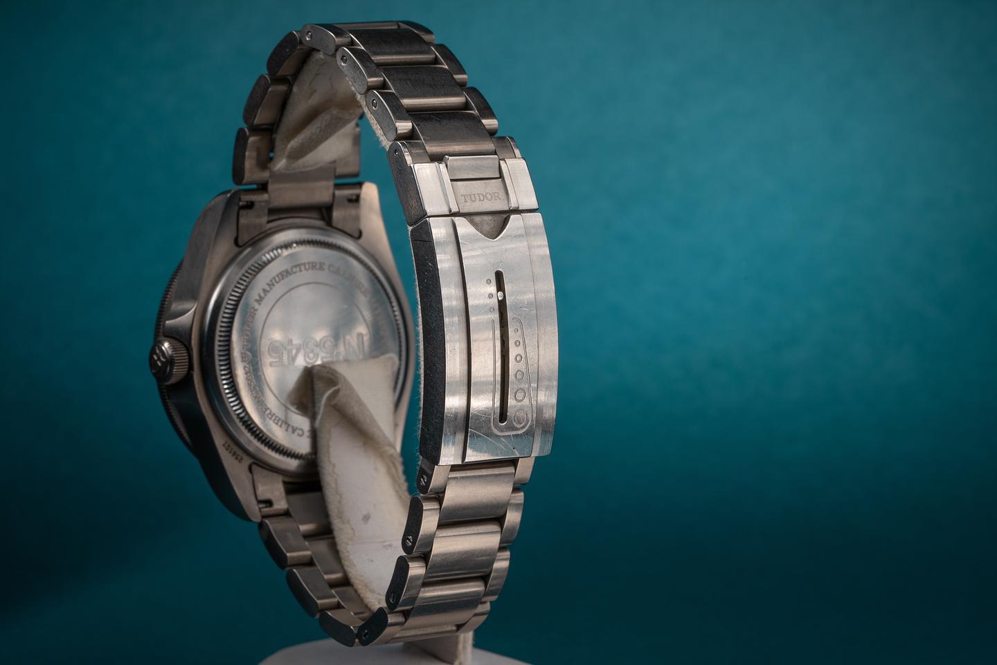 Case: The titanium case is excellent showing wide sharp factory bevels and some light wear from use. The bezel insert is also in excellent condition showing only very light wear from use.