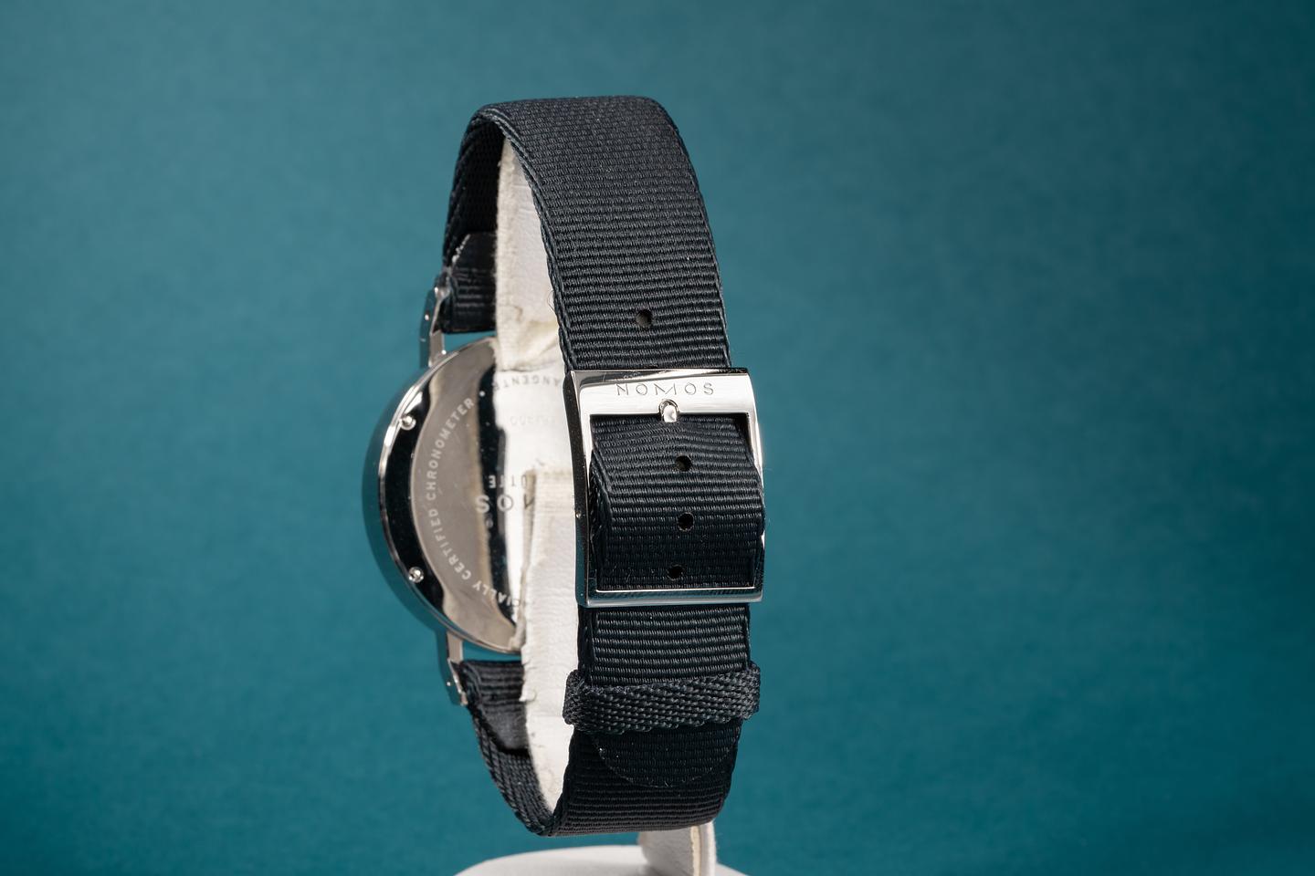 Bracelet: Excellent dark grey Nomos fabric strap.