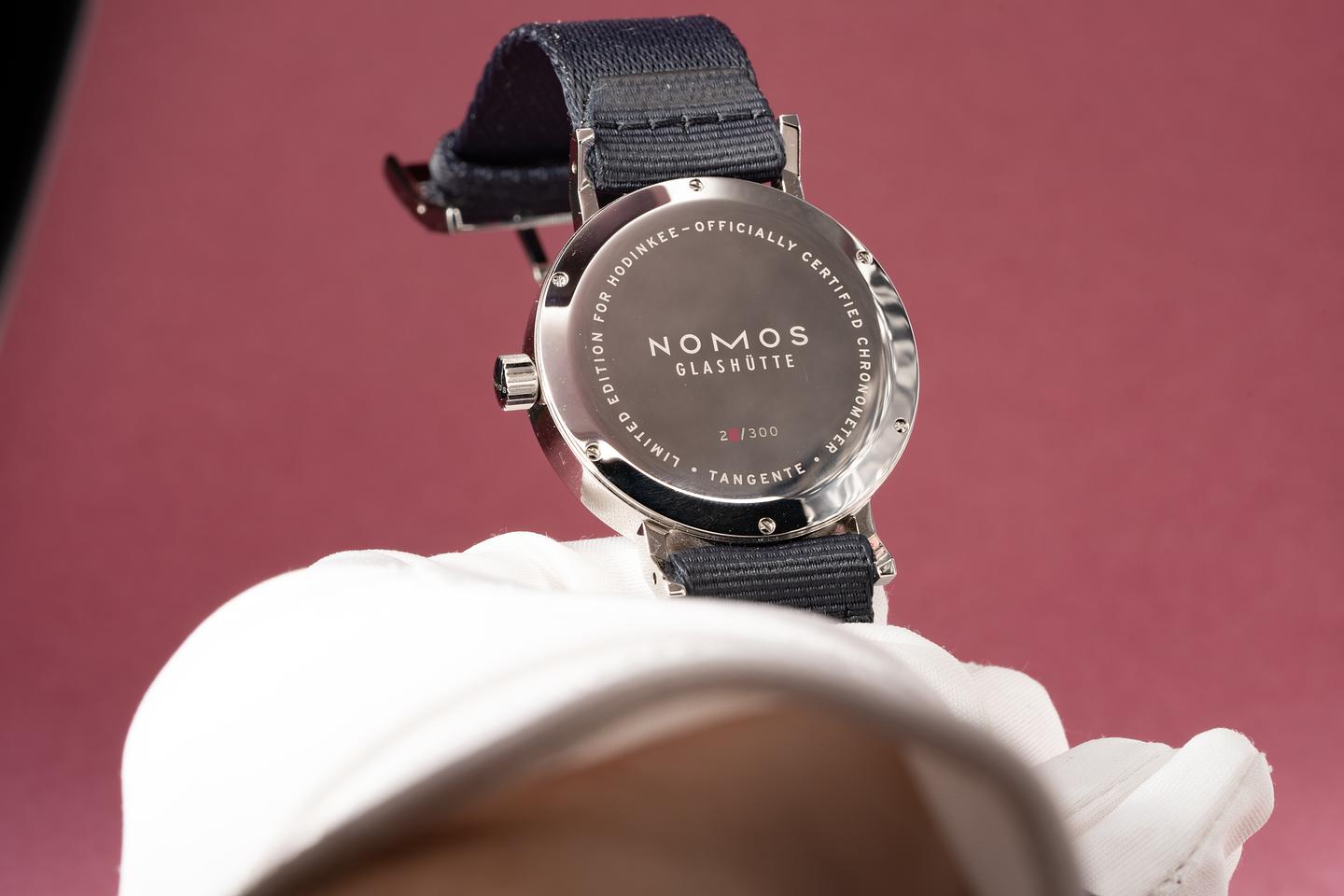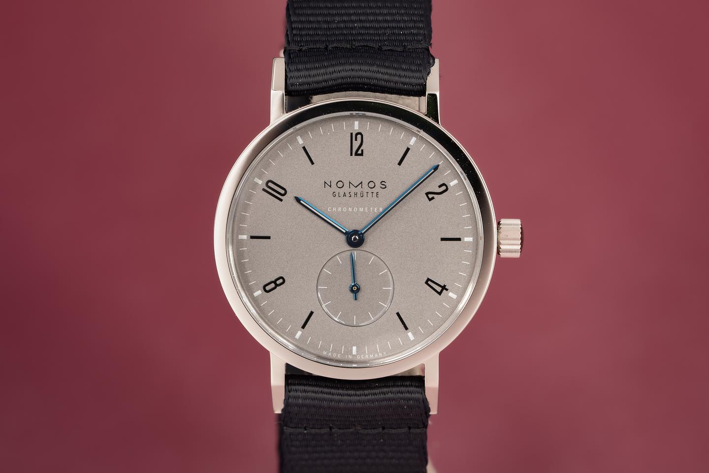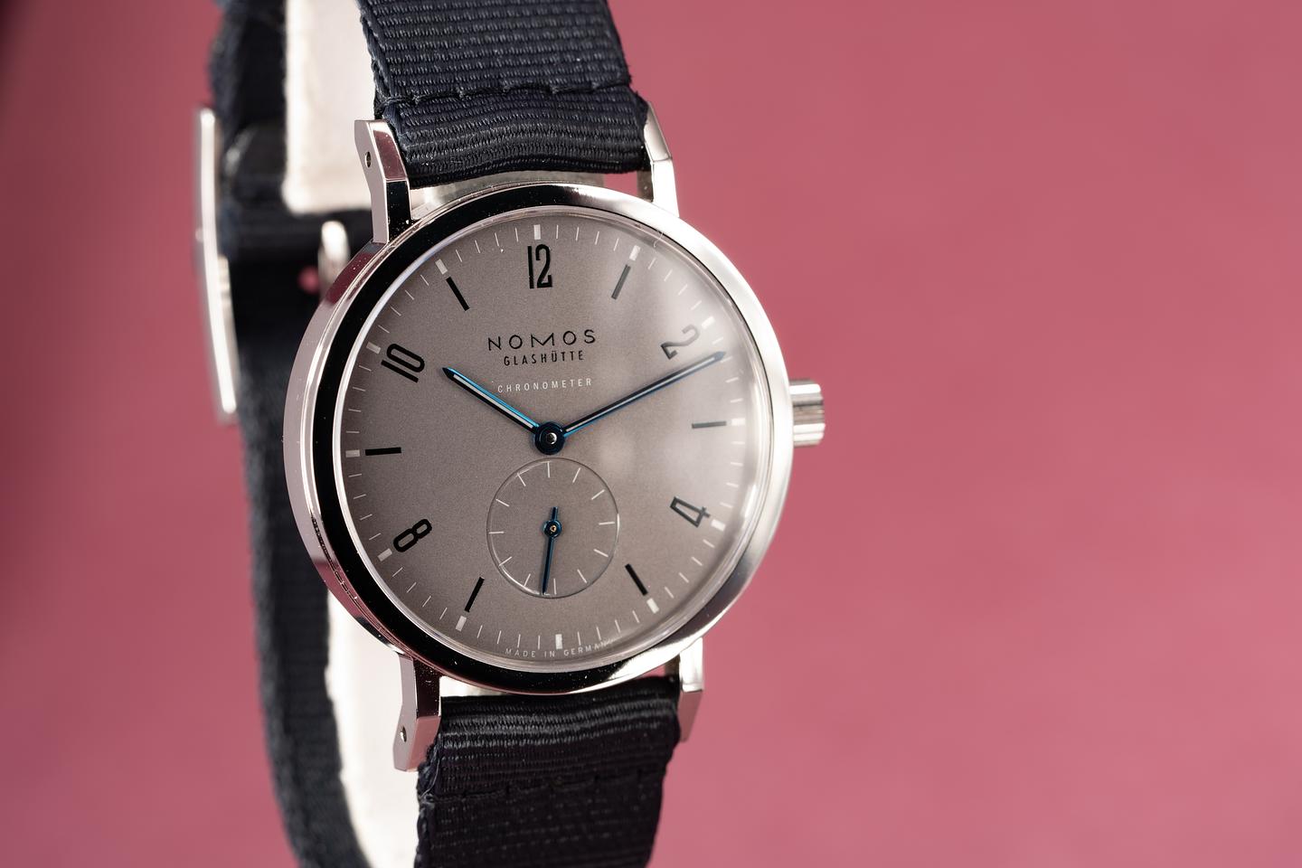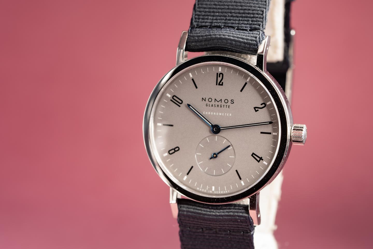 Bracelet: Excellent dark grey Nomos fabric strap.