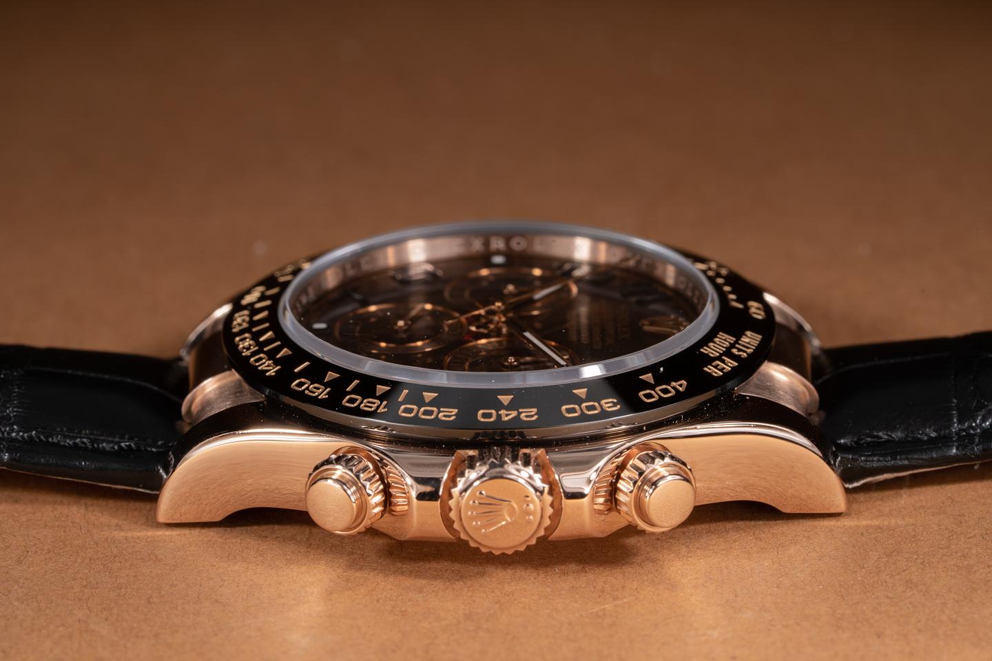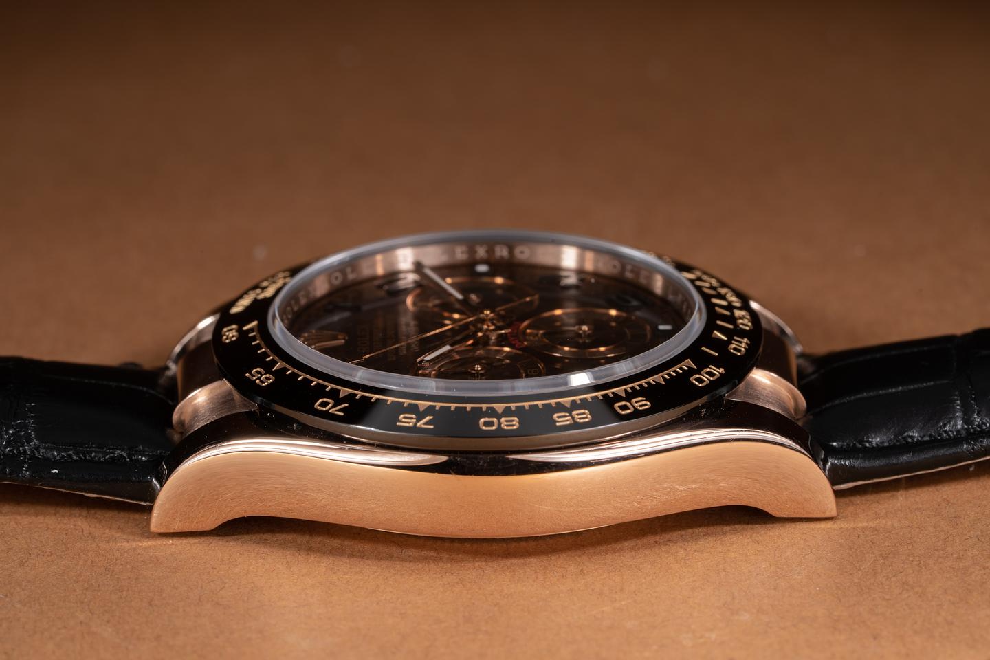Case: The 18k everose case is excellent showing only light wear from use. The Black ceramic bezel is also in excellent condition showing no visible wear.