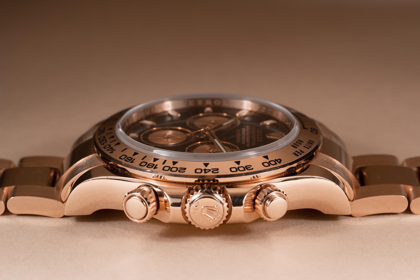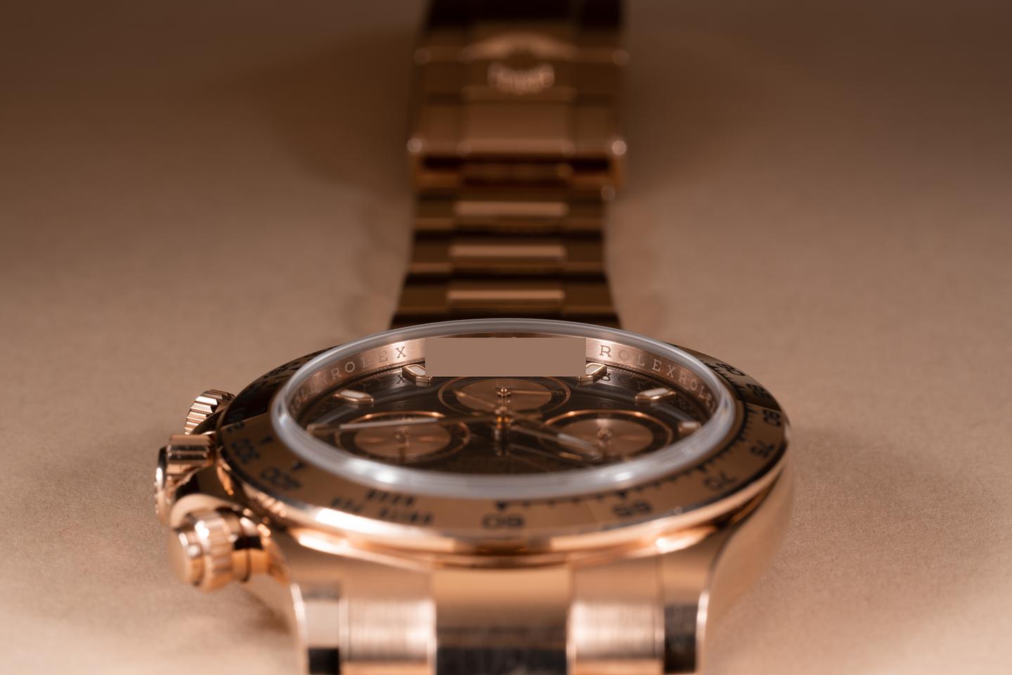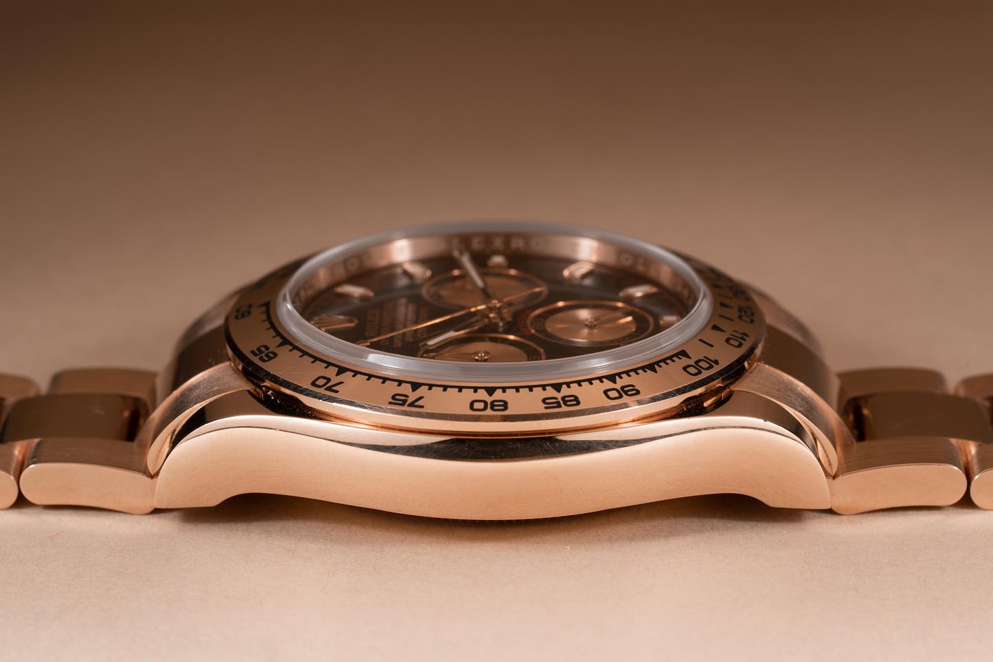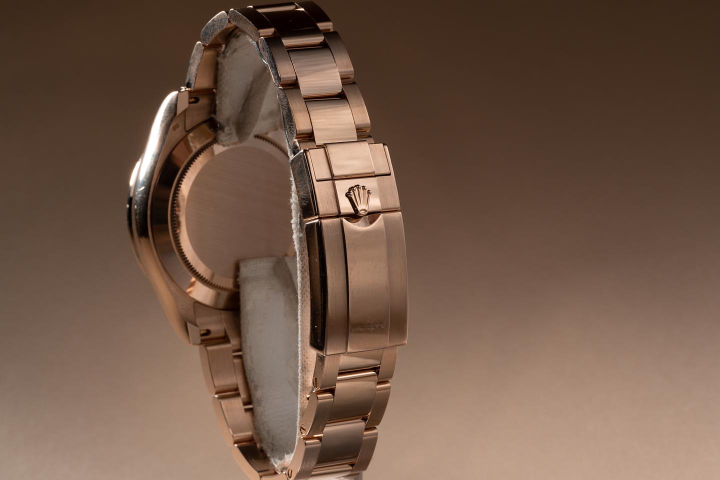 Case: Thw 18k everose case is excellent showing only very light wear. The 18k everose bezel is also in excellent condition showing only very light wear.