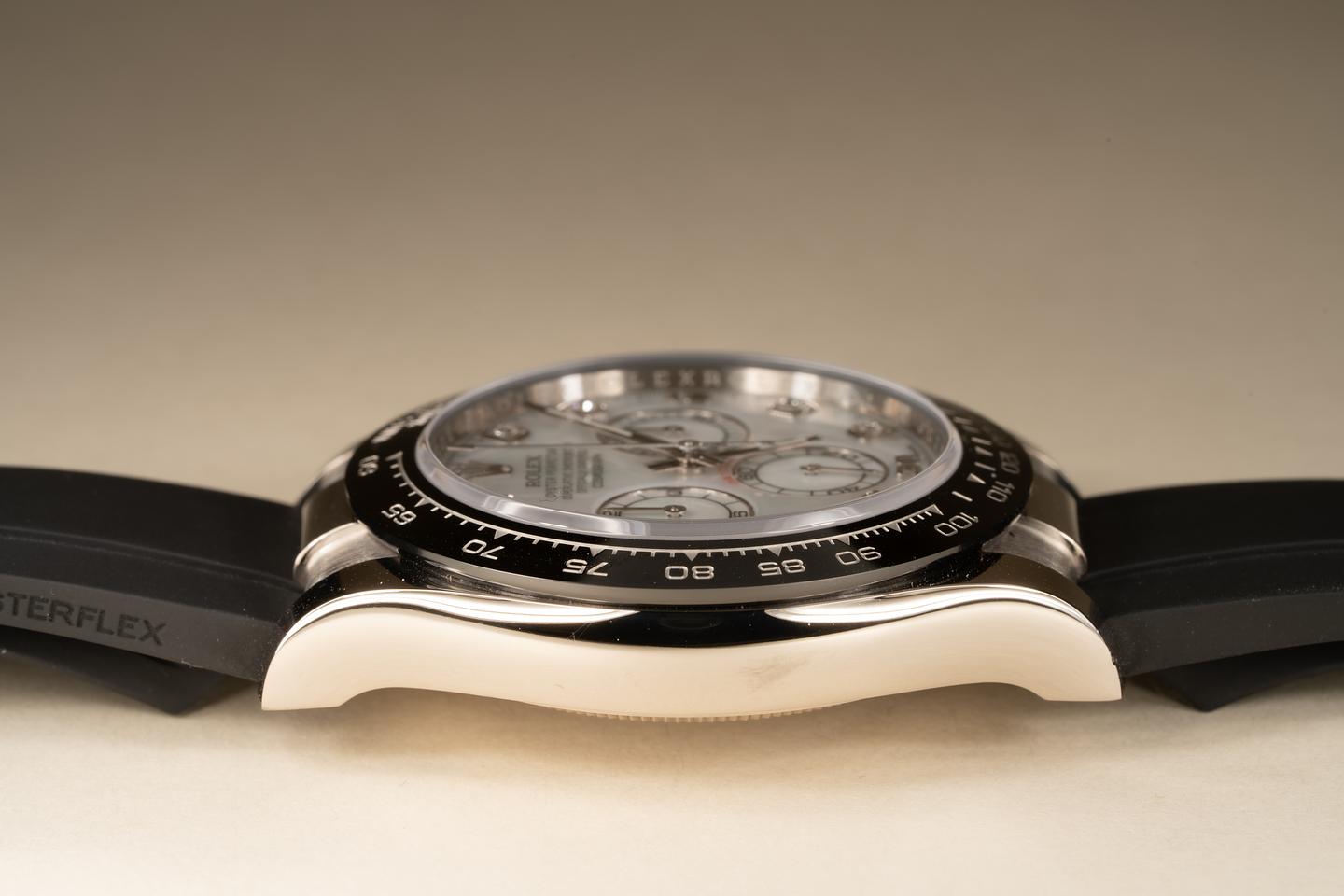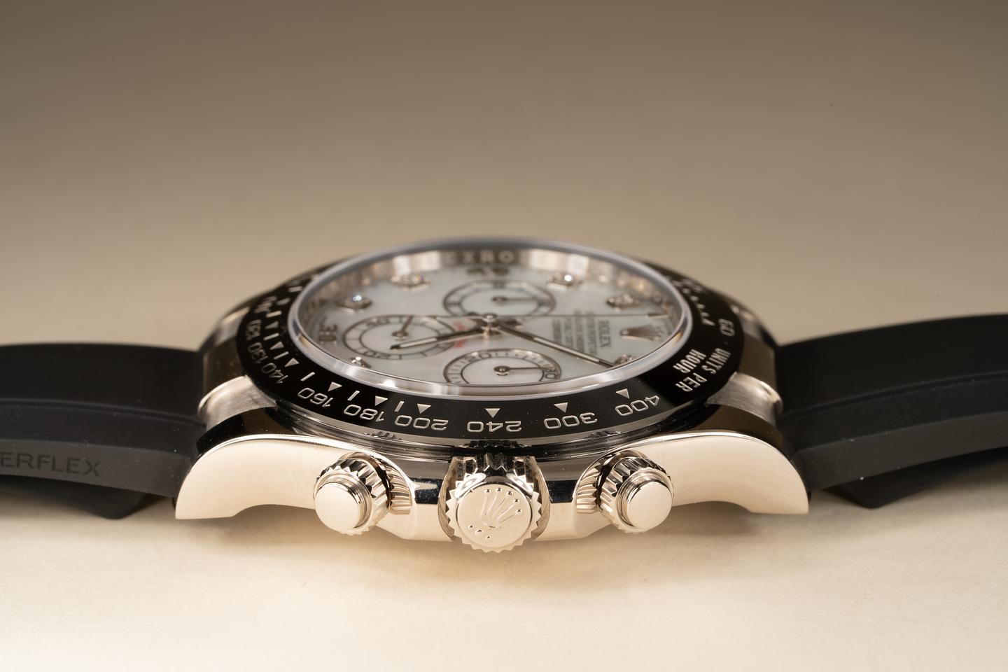 Case: The 18k white gold case is excellent and shows only very light wear. The black ceramic bezel is also in excellent condition and shows no visible wear.
