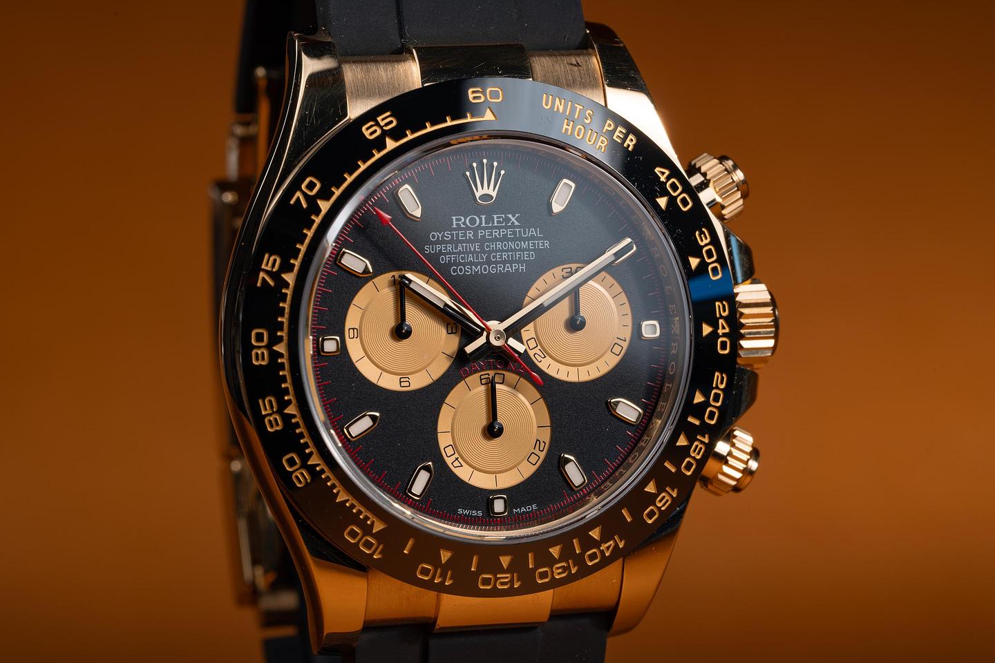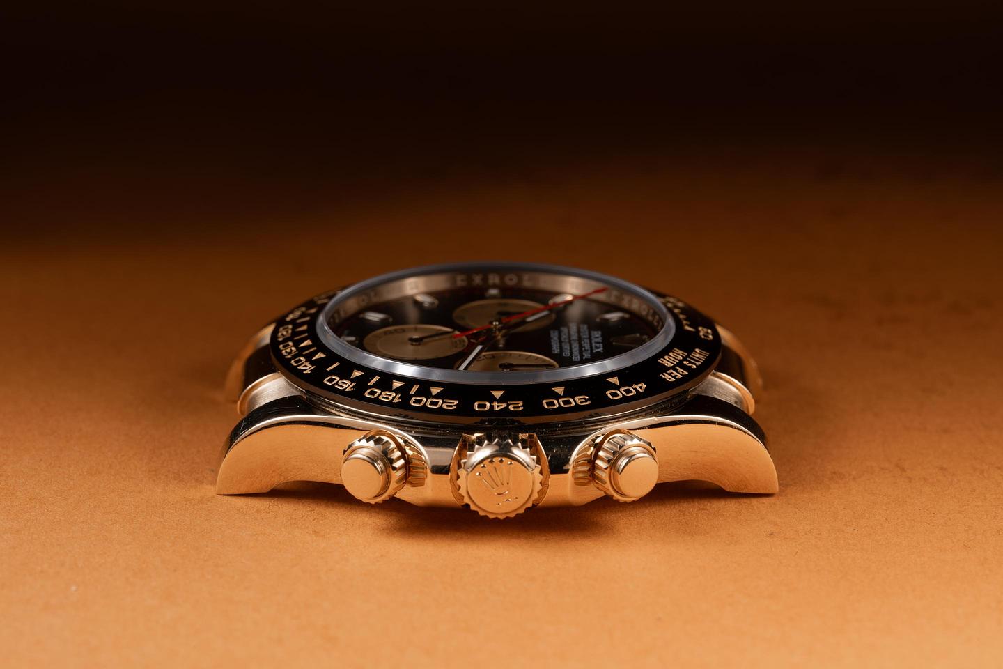 Dial: The black and gold "Paul Newman" dial is excellent, showing no visible wear. The original factory hands are matching.