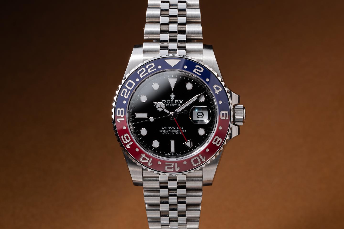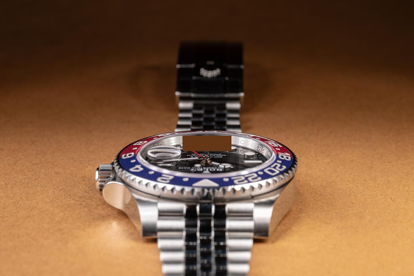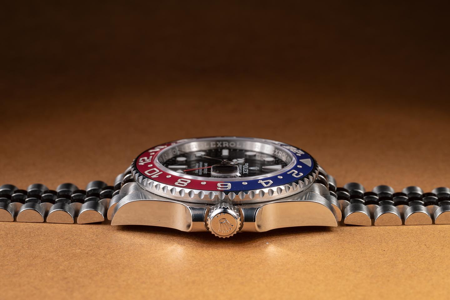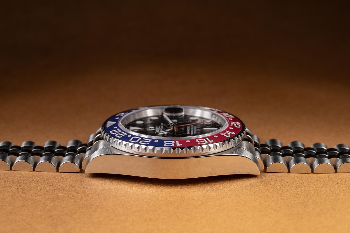 Case: The case is excellent, showing only extremely light wear from use. The blue and red ceramic bezel is also in excellent condition, showing no visible wear.