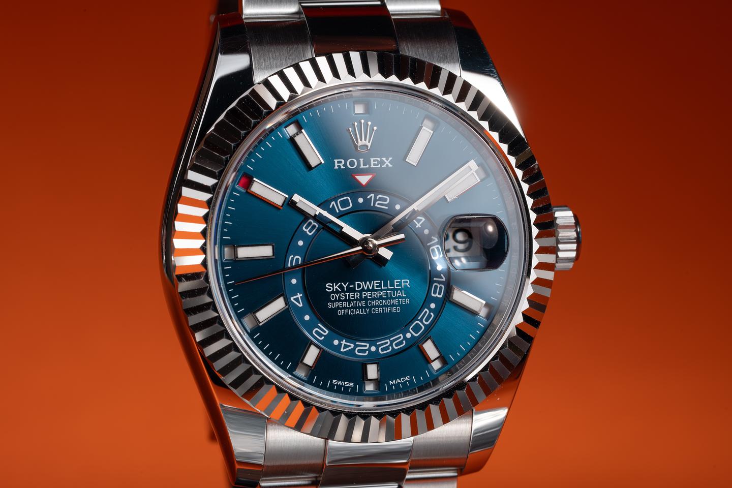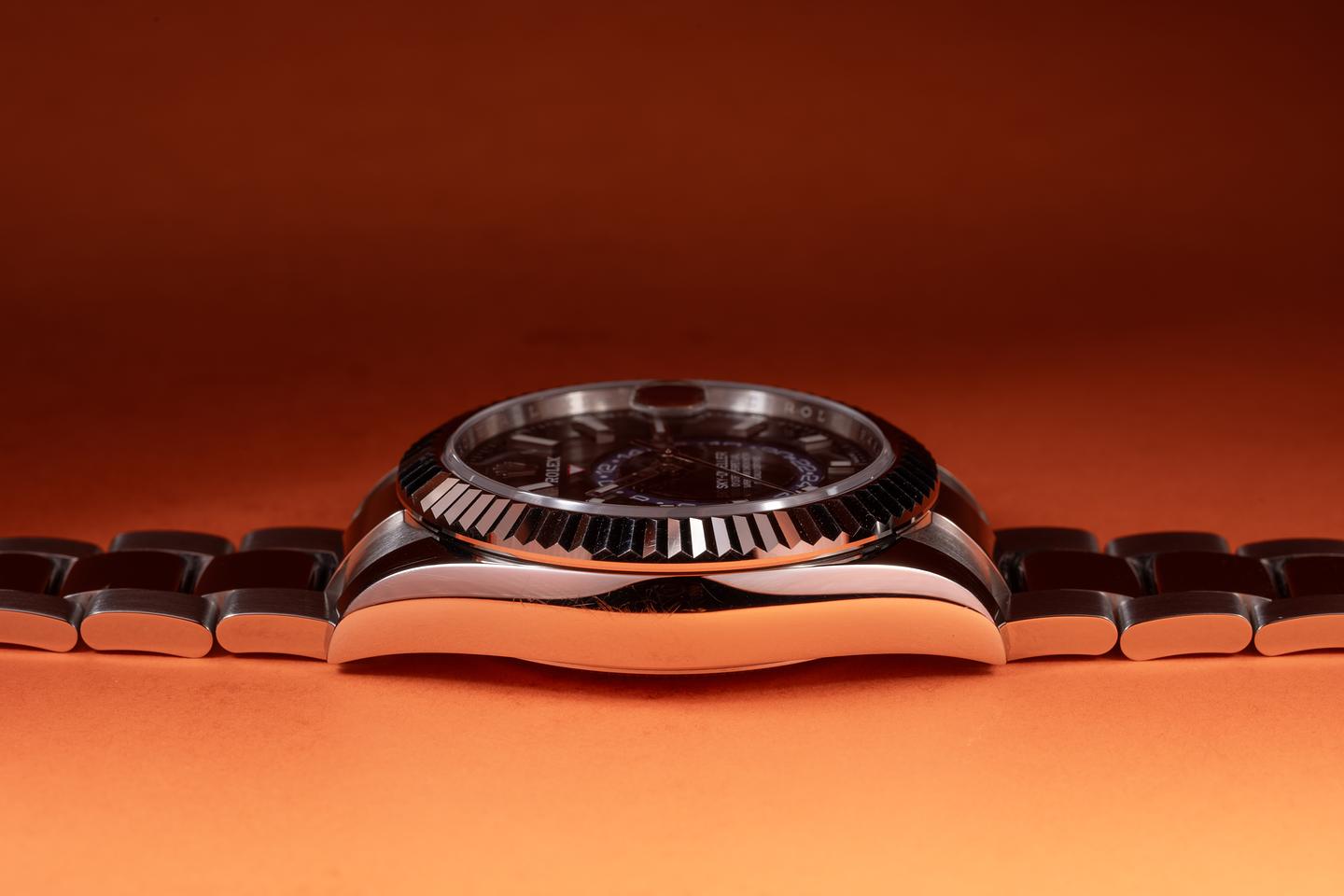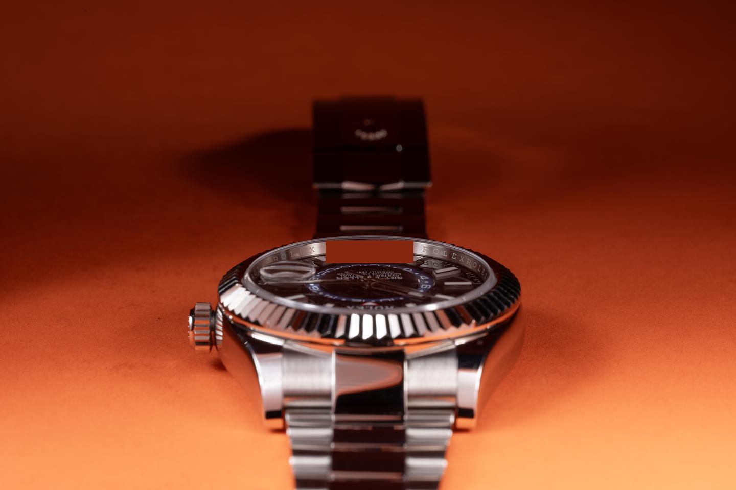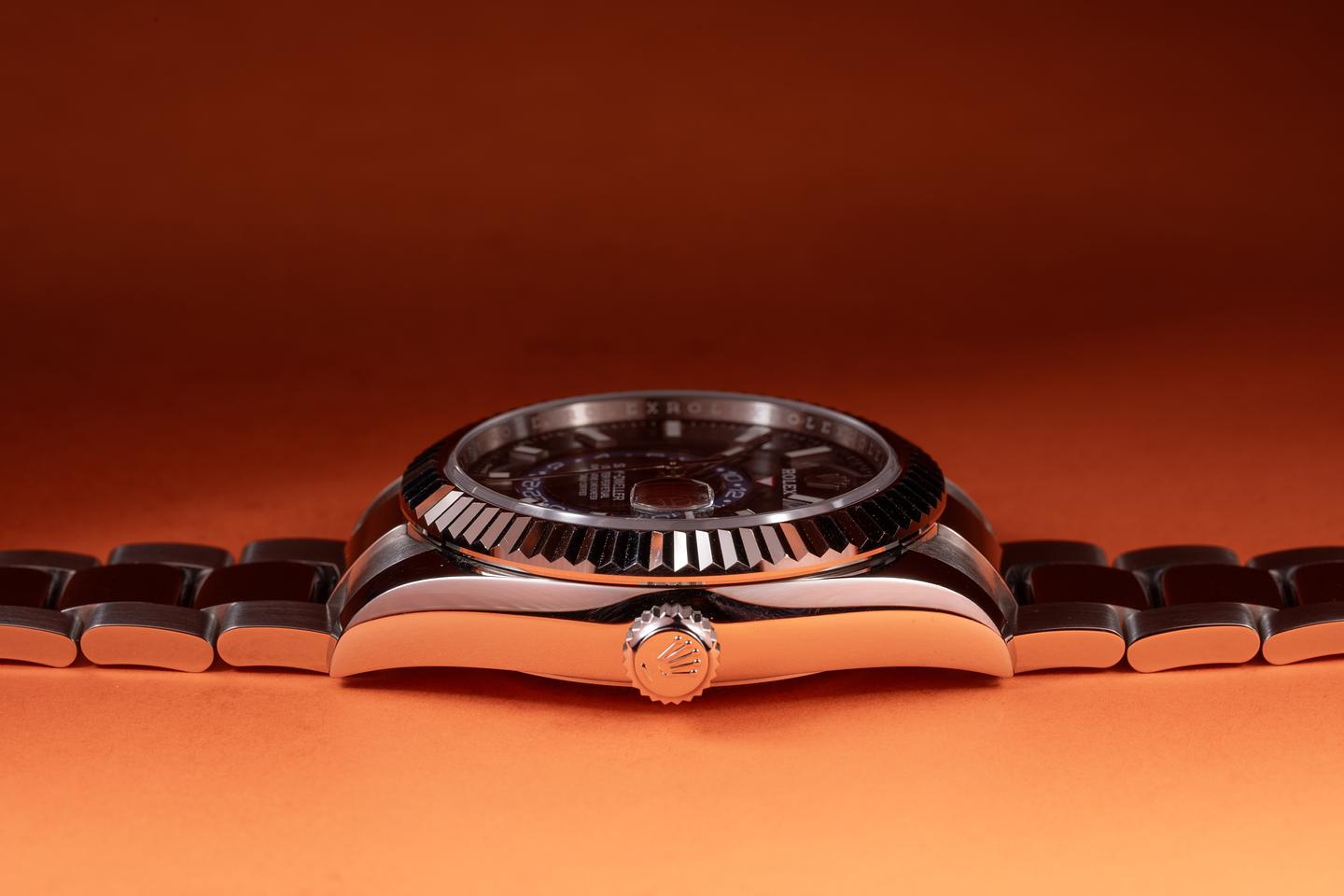 Case: The 42mm 18k white gold case is excellent showing only very light wear from use. The sharp 18k white gold fluted bezel is also in excellent condition showing only light wear from use.