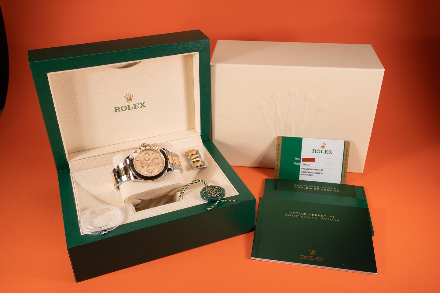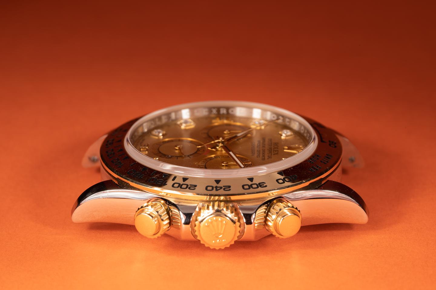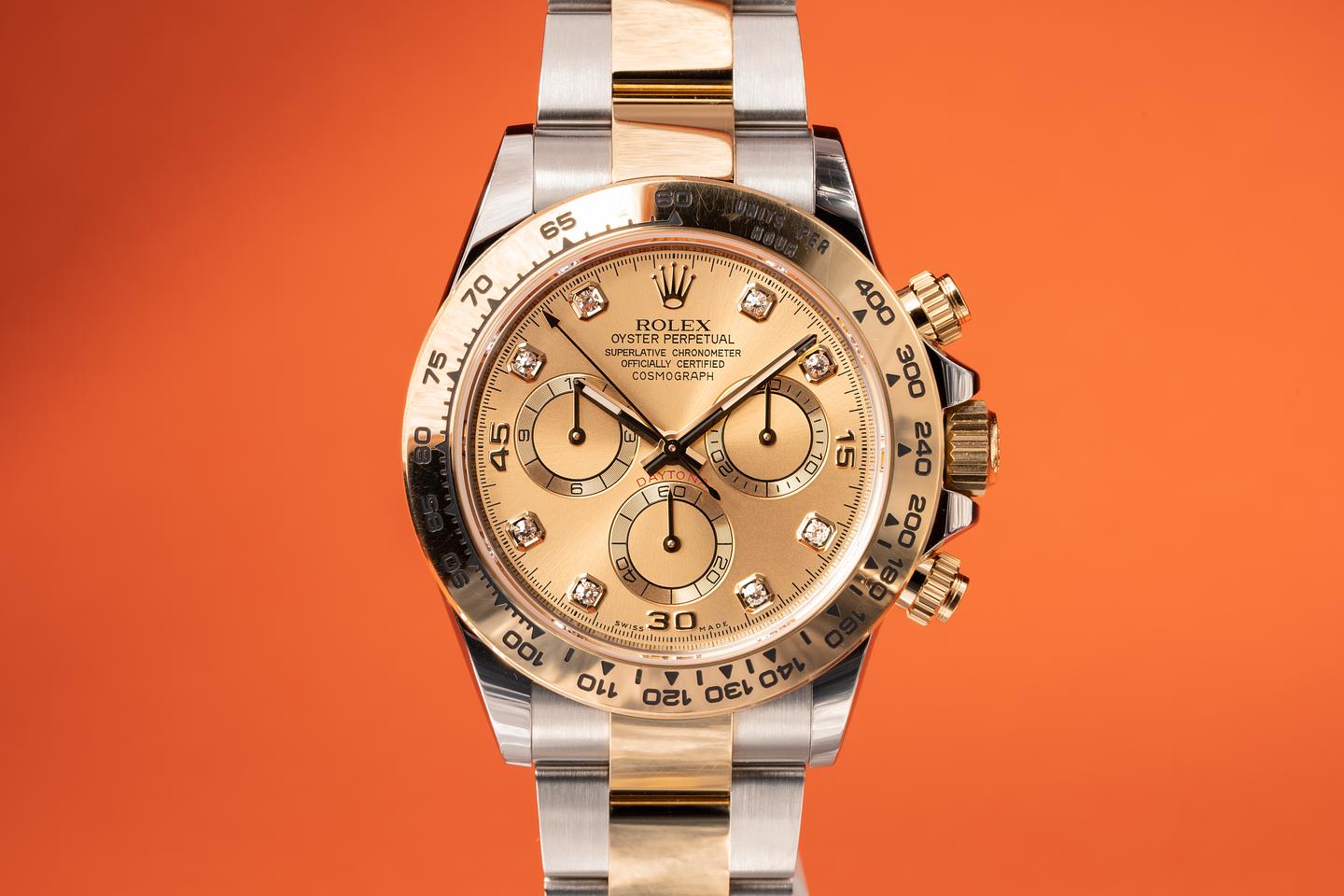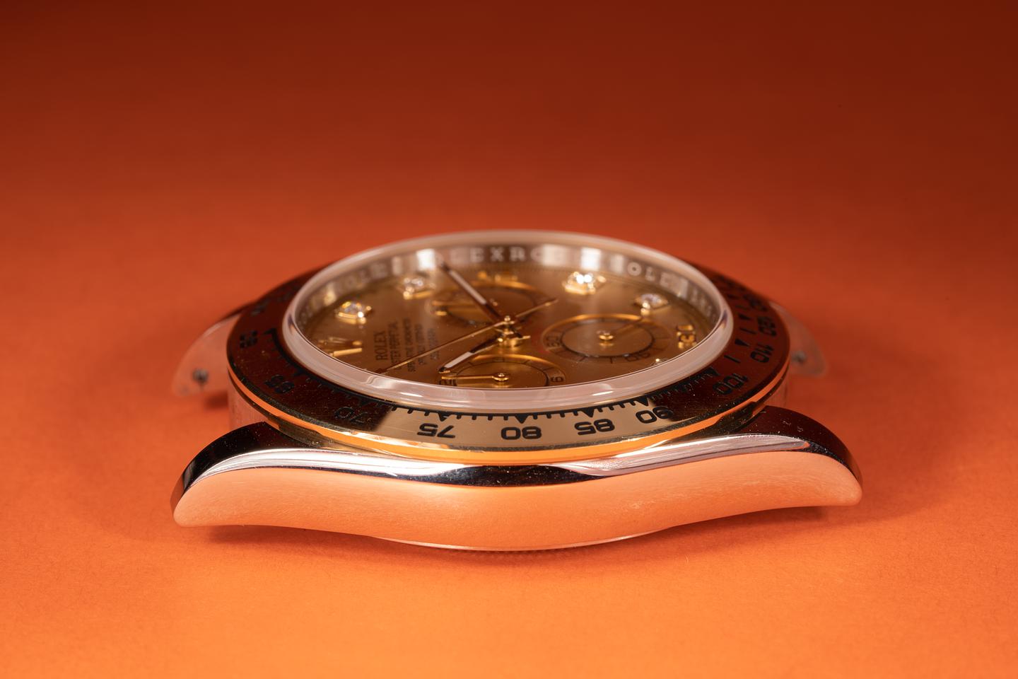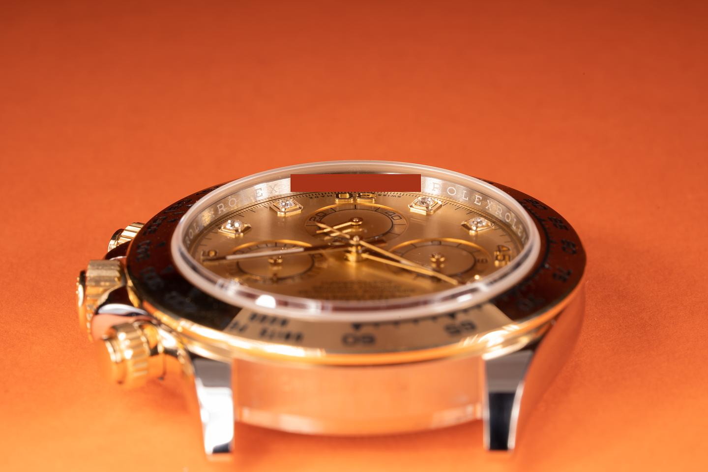 Dial: The champagne diamond dial is excellent showing no visible wear. The diamond markers are bright and clean and the original factory hands are matching.