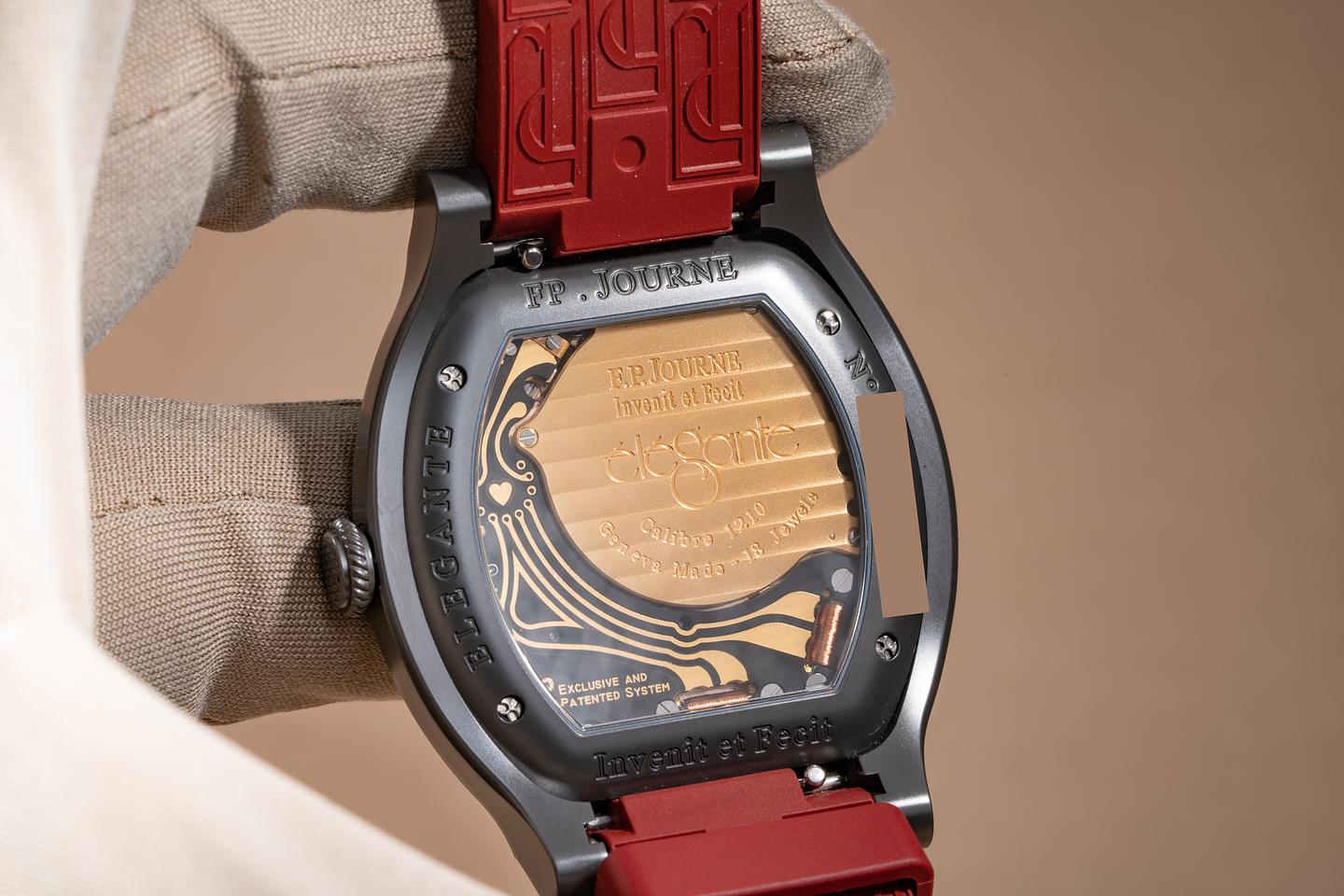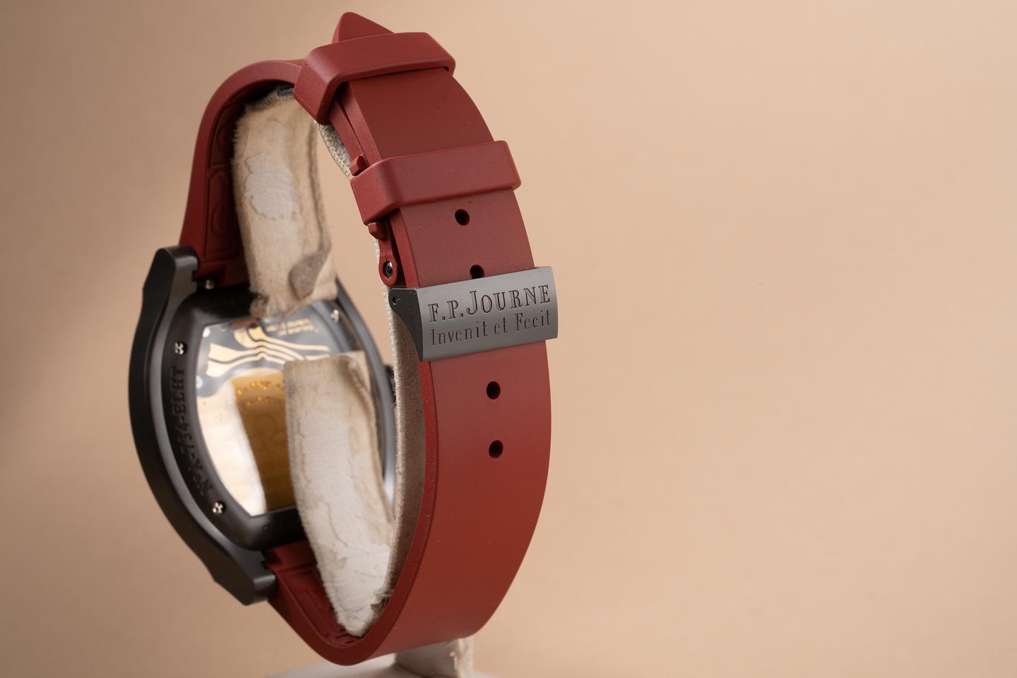Bracelet: The red rubber F. P. Journe strap is excellent showing only extremely light wear. The titanium clasp is matching.