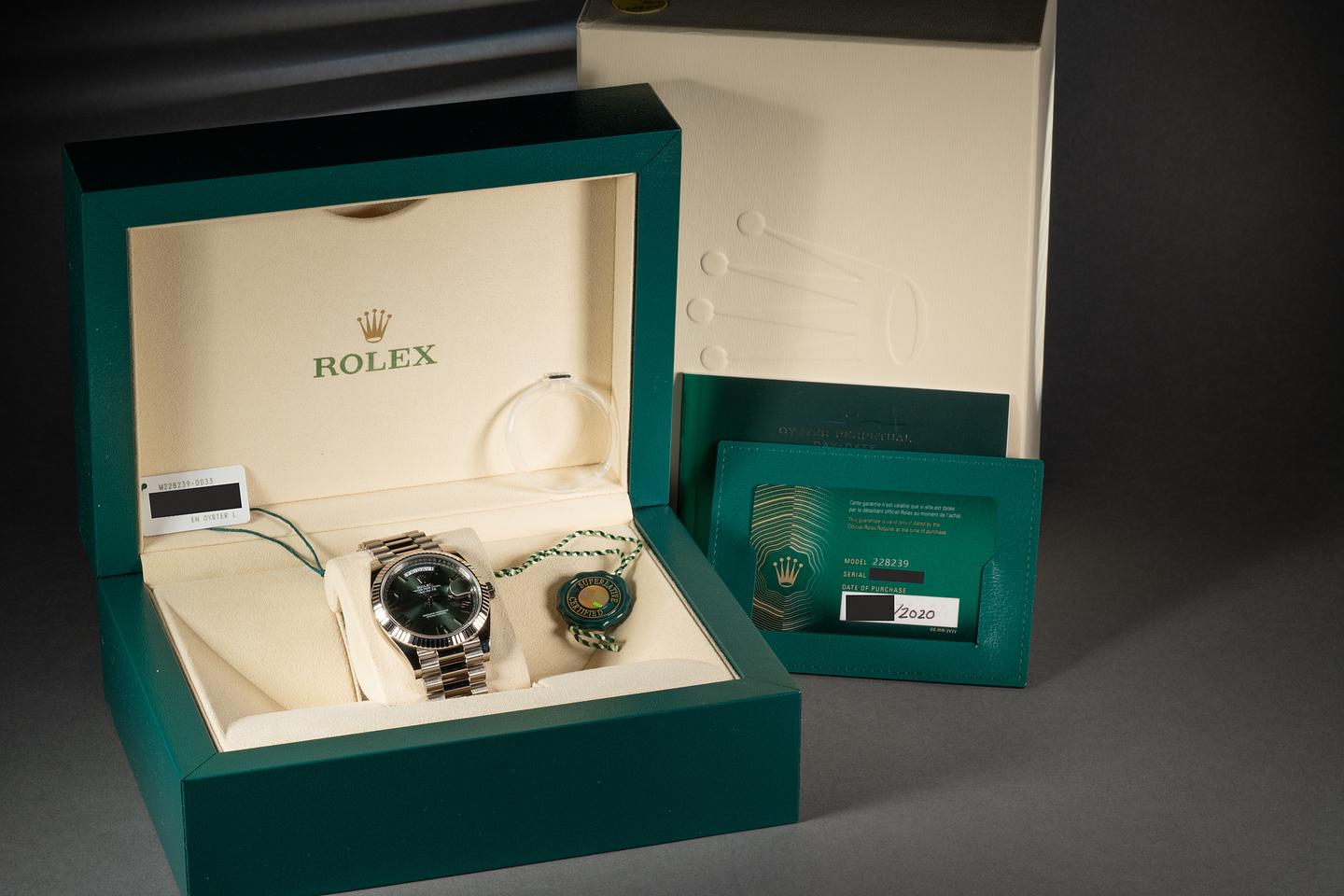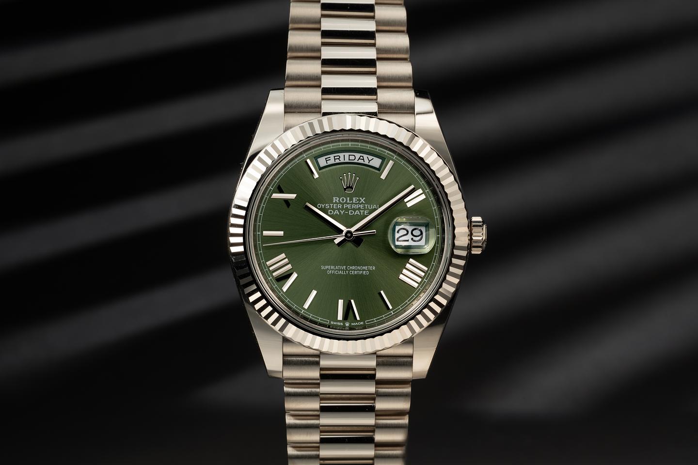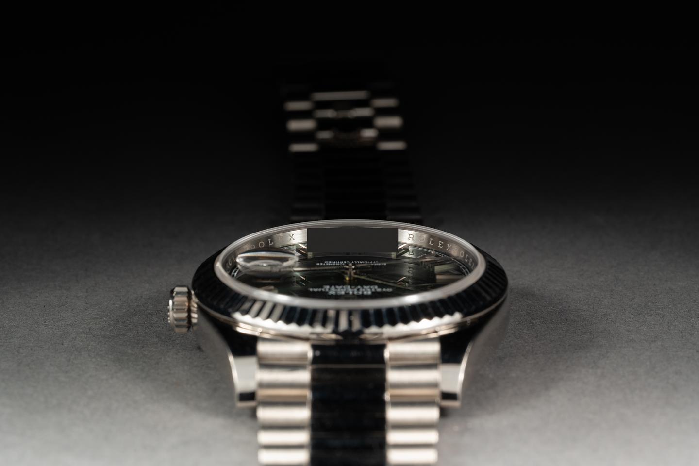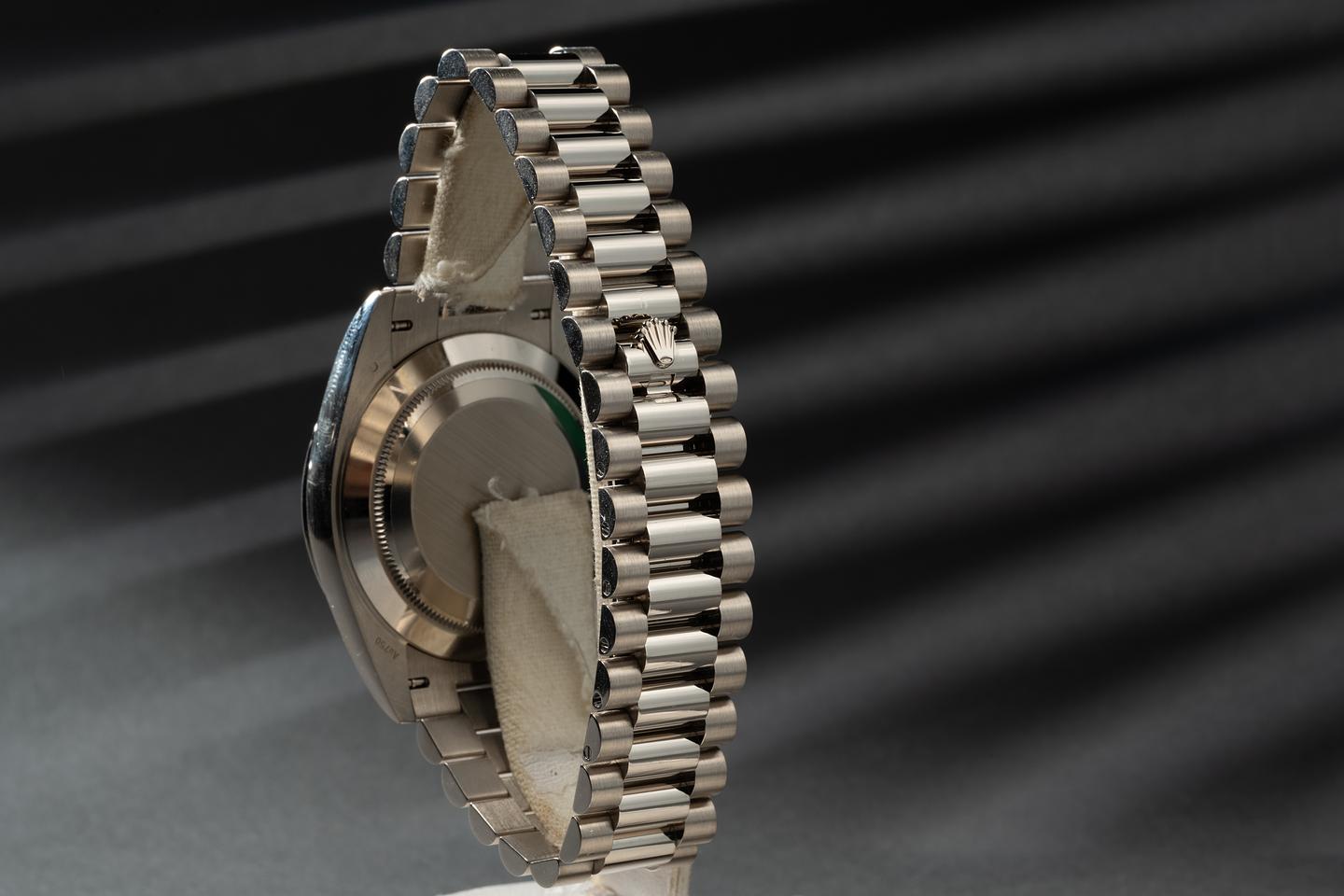 Bracelet: The 25 link 18K white gold President bracelet is excellent showing no perceivable stretch.