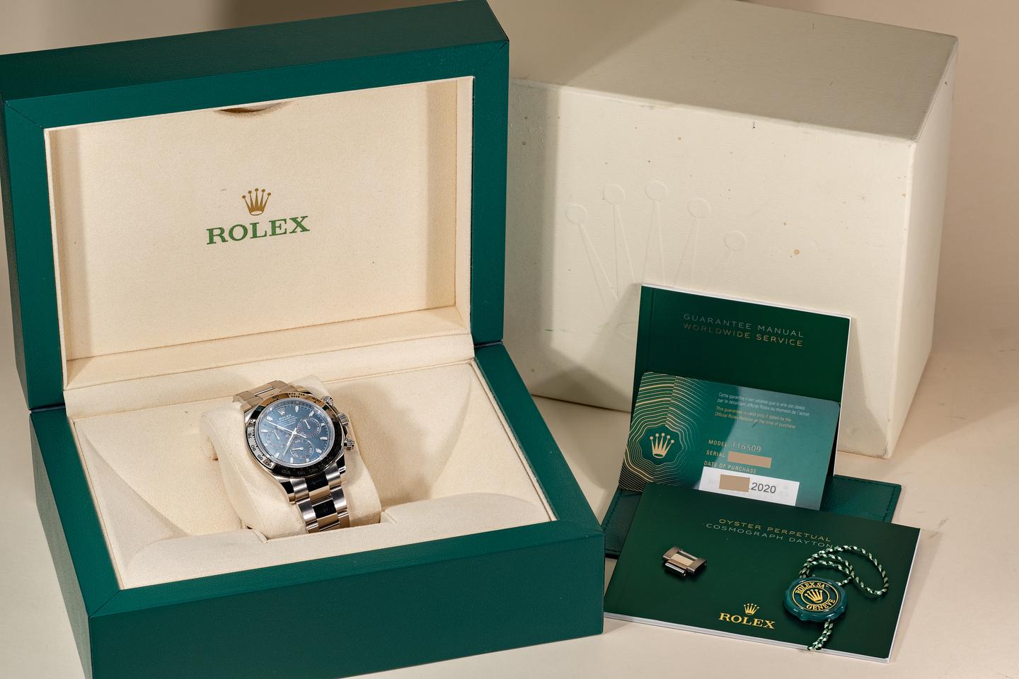Dial: The blue dial is mint and the original factory hands are matching.