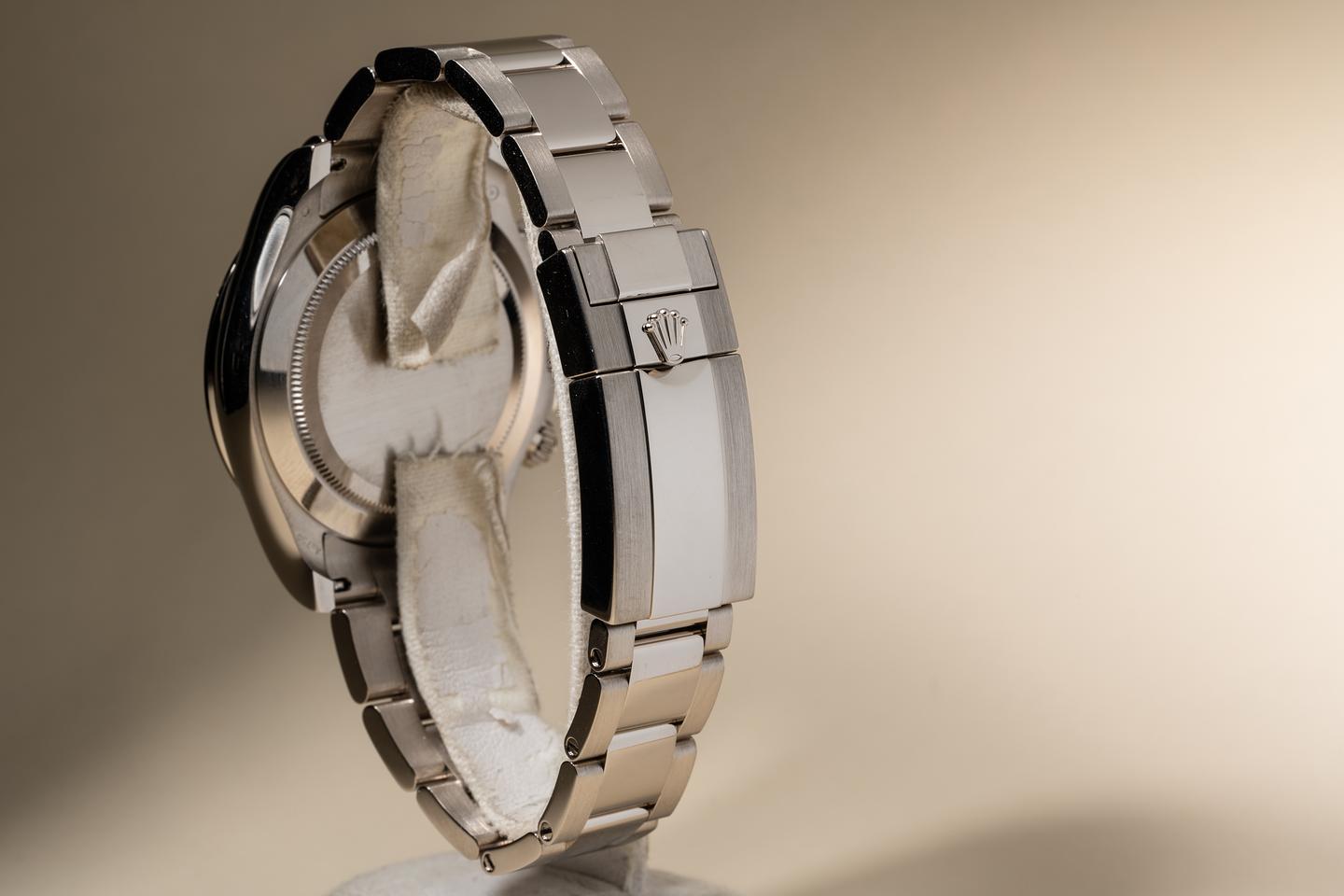 Bracelet: The 10.5 link 18k white gold Oyster bracelet is excellent showing no perceivable stretch. There is an additional link included with the watch.