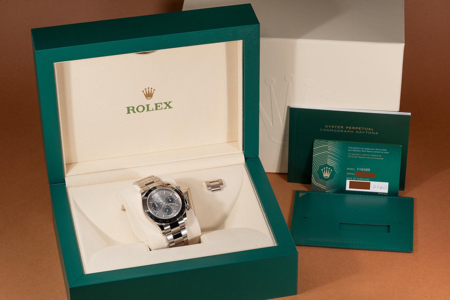 Case: The 18k white gold case and bezel appear unworn and are in near mint condition showing only extremely light shop wear.