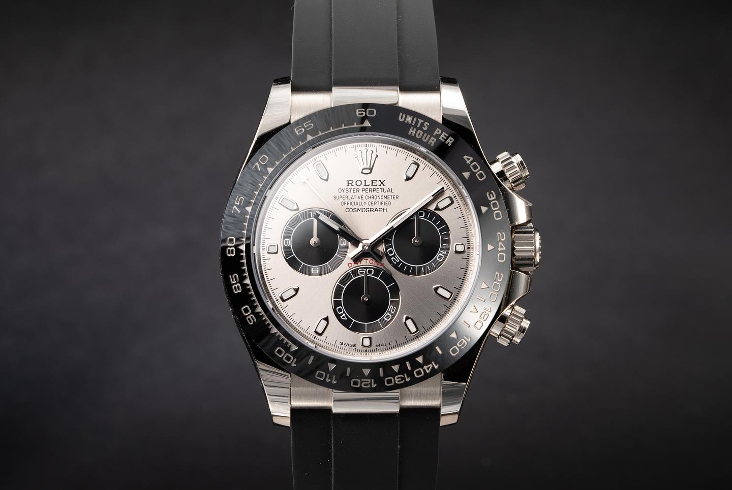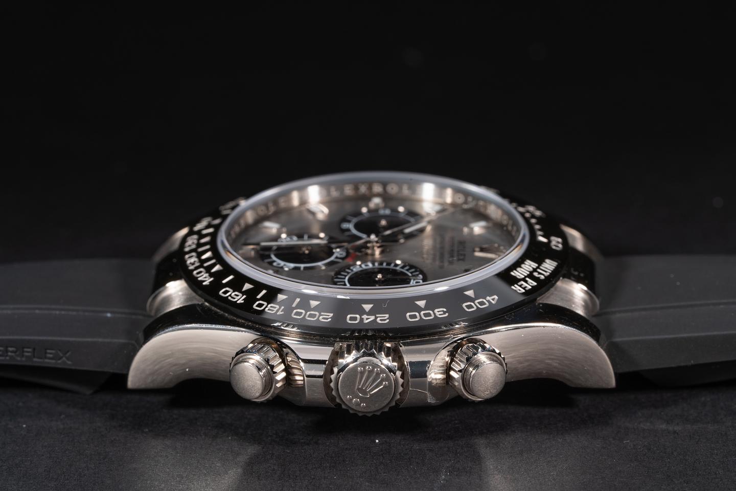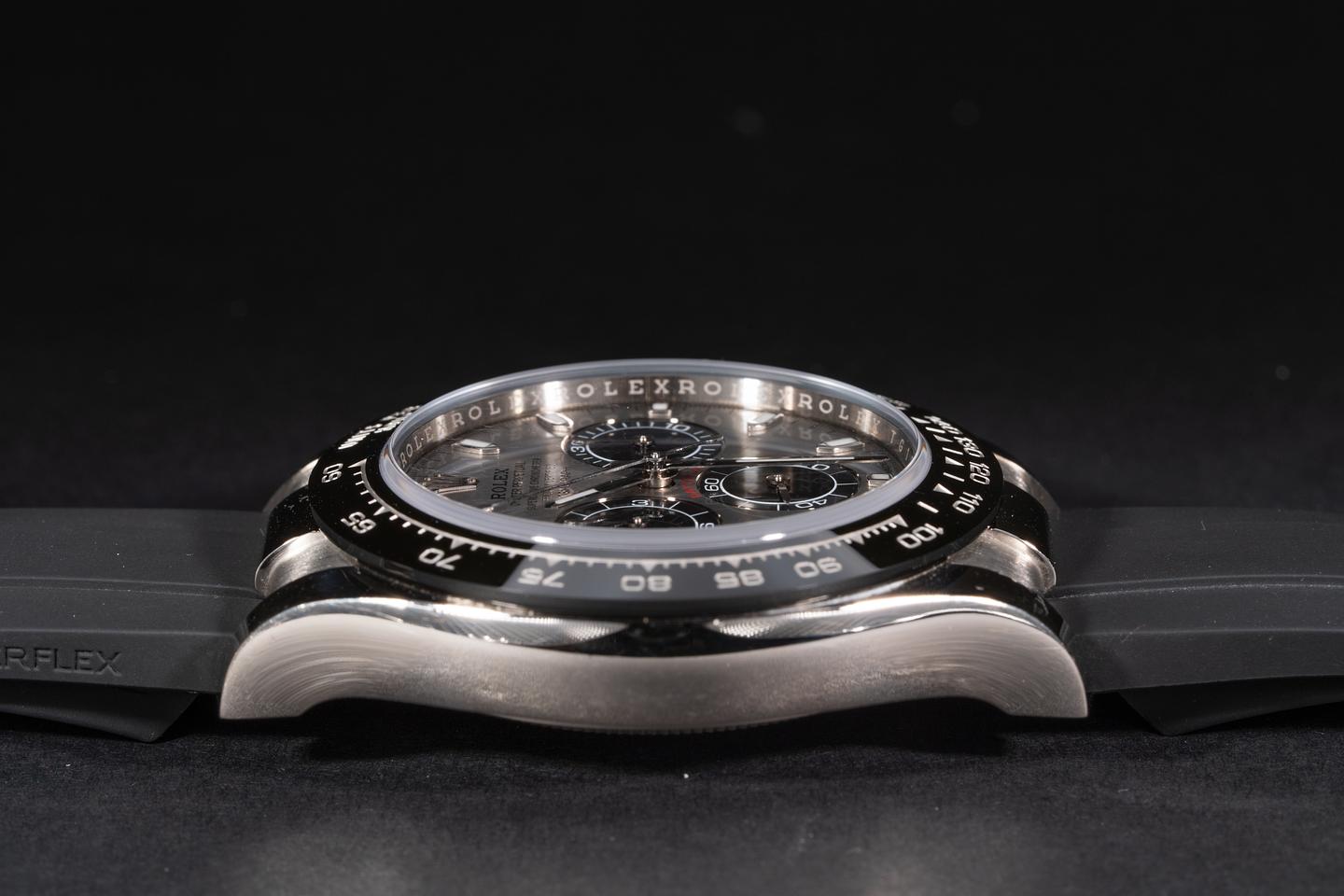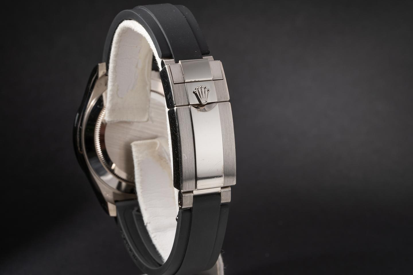 Bracelet: The Rolex Oysterflex brand is excellent with a matching 18kt white gold buckle.