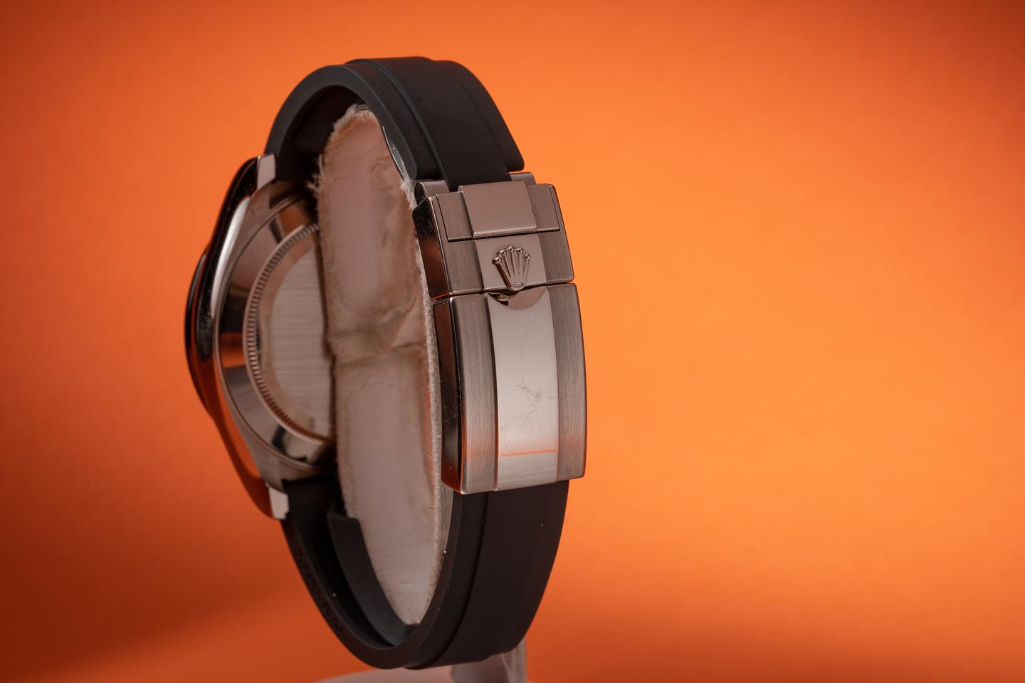 Bracelet: The Rolex oyster flex bracelet is excellent showing only very light wear. The 18k white gold clasp is excellent showing some light wear from use.
