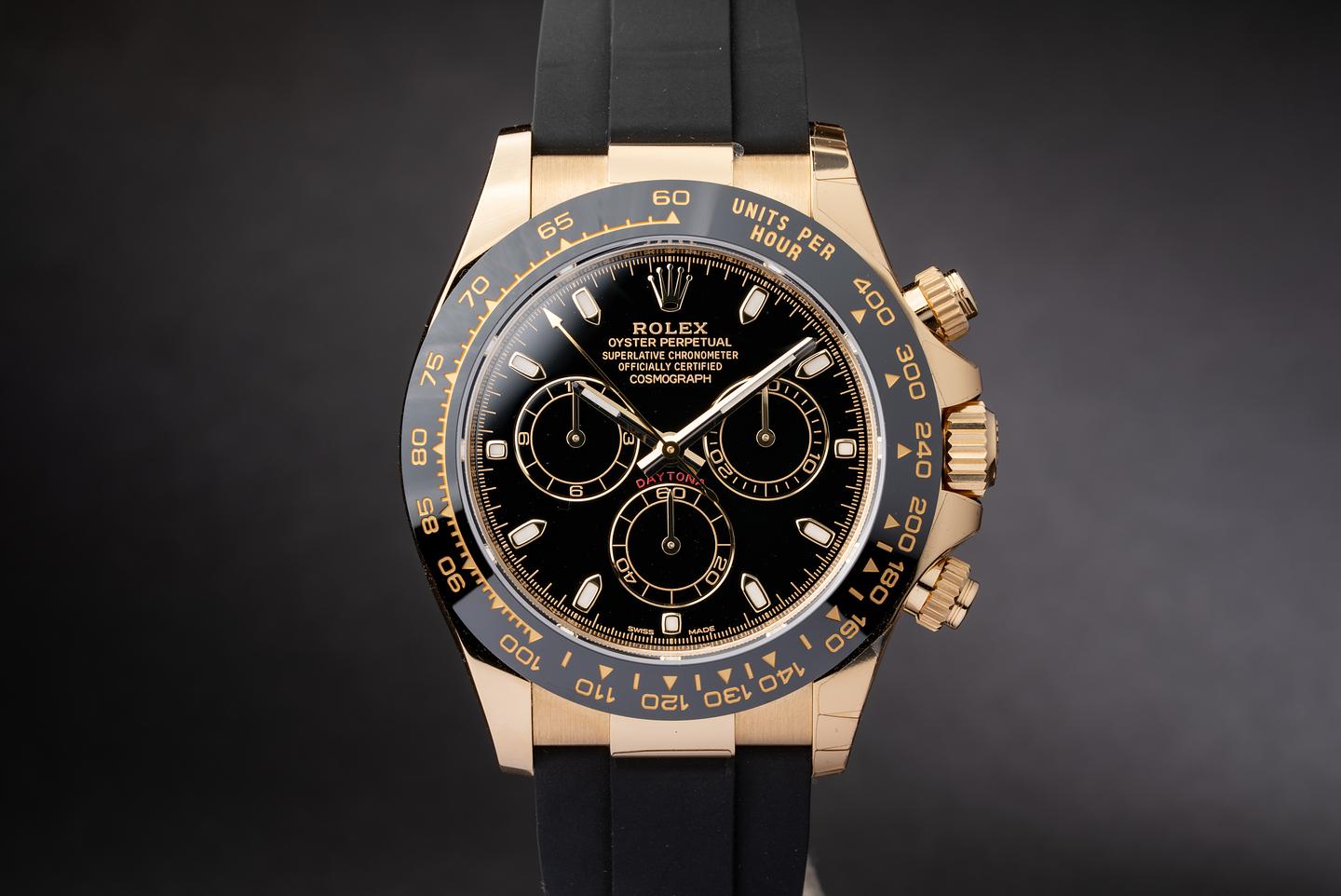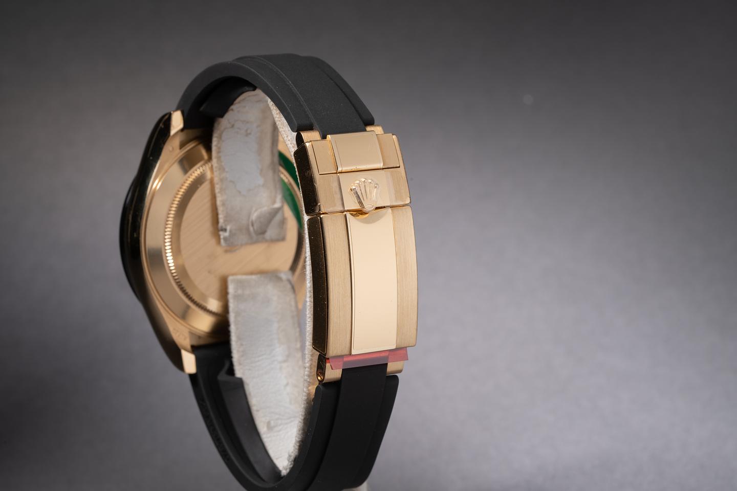 Bracelet: The Oysterflex bracelet is mint. The 18k yellow gold clasp is mint with the factory protective stickers still in place.
