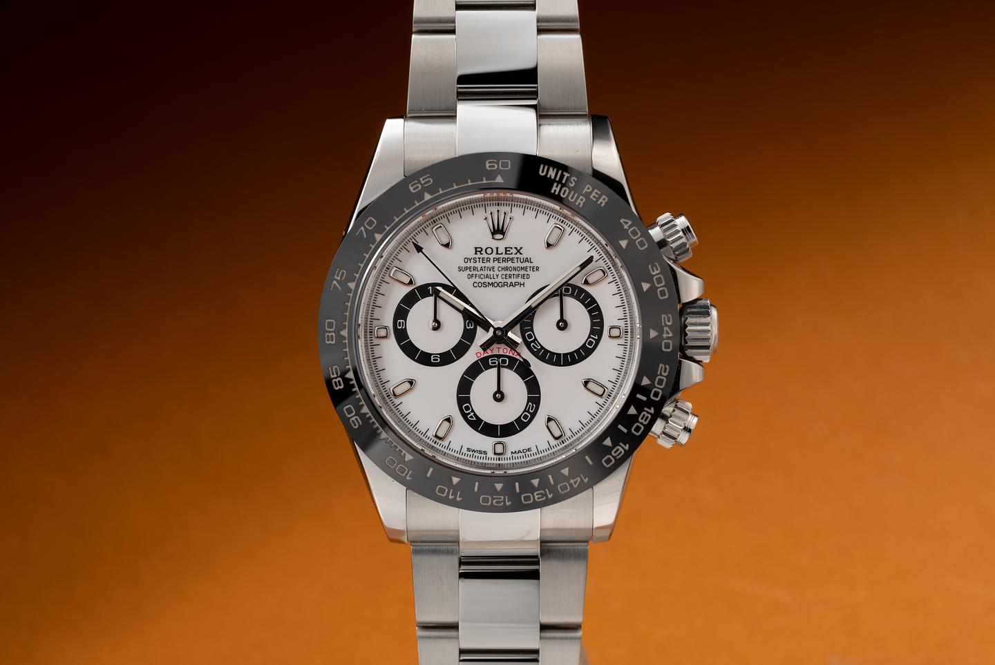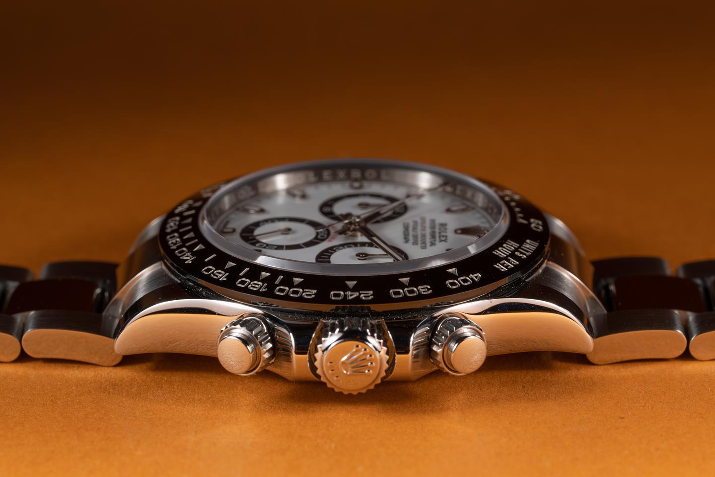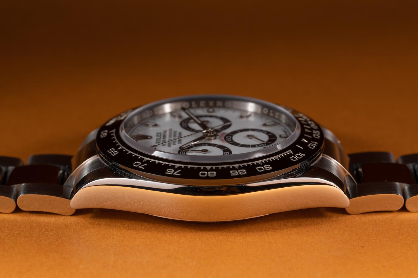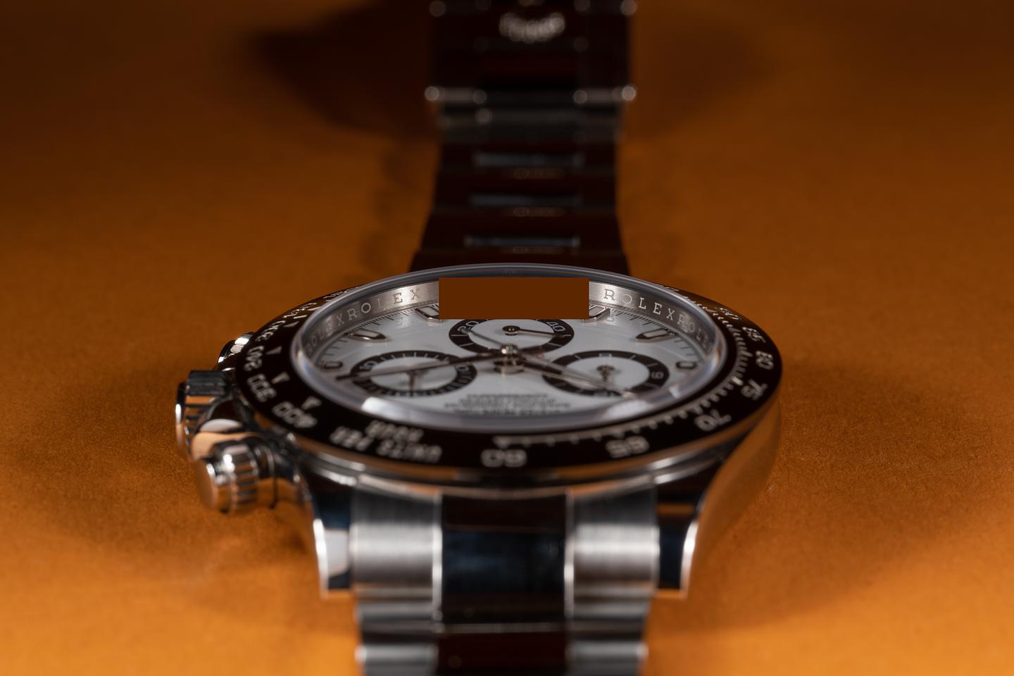Case: The unpolished case is excellent showing only very light wear from use. The black ceramic bezel is also in excellent condition showing no visible wear.