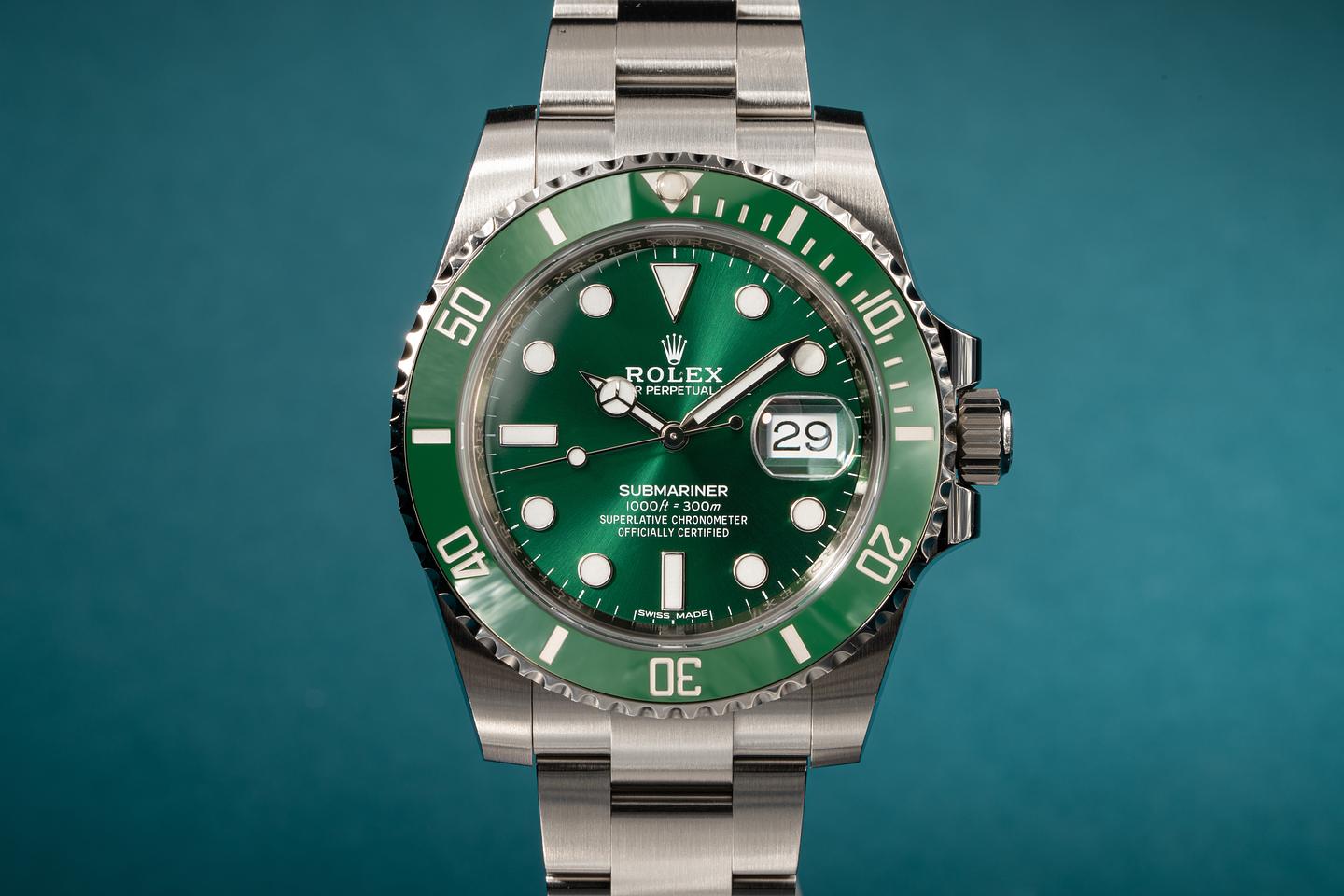 Dial: The green dial is excellent showing no visible wear. The original factory hands are matching.