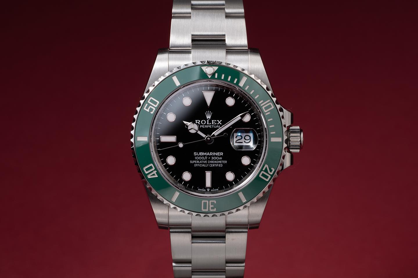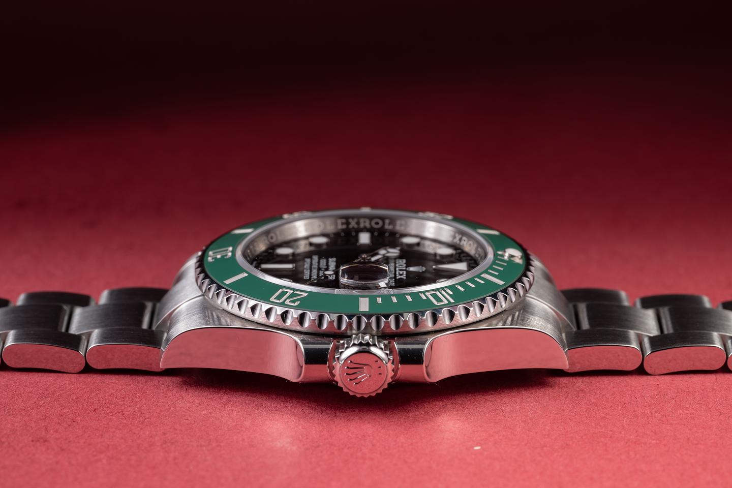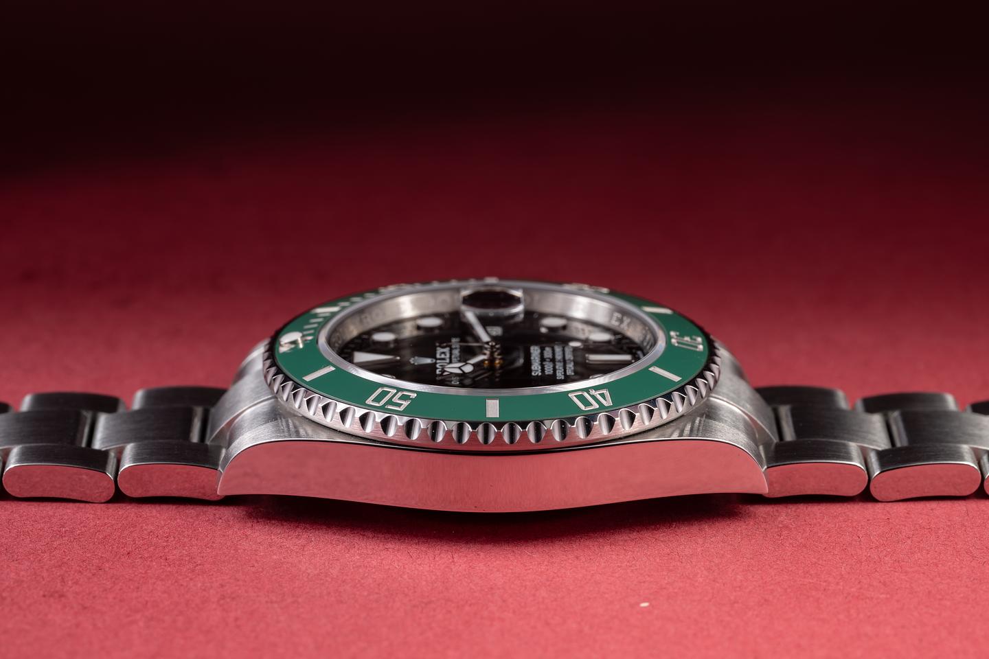 Case: The 41mm case is in excellent unworn condition, showing only extremely light wear from use. The green ceramic bezel is also excellent unworn condition, showing no visible wear.