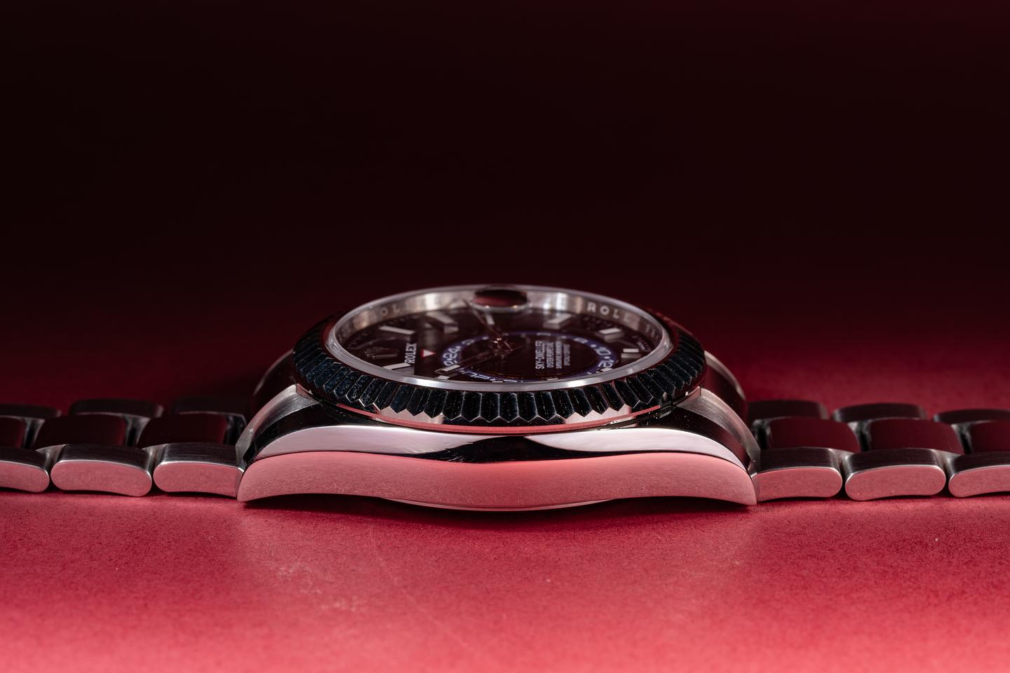 Case: The 42mm case is excellent showing only light wear form use. The sharp 18k white gold fluted bezel is also in excellent condition showing only light wear form use.