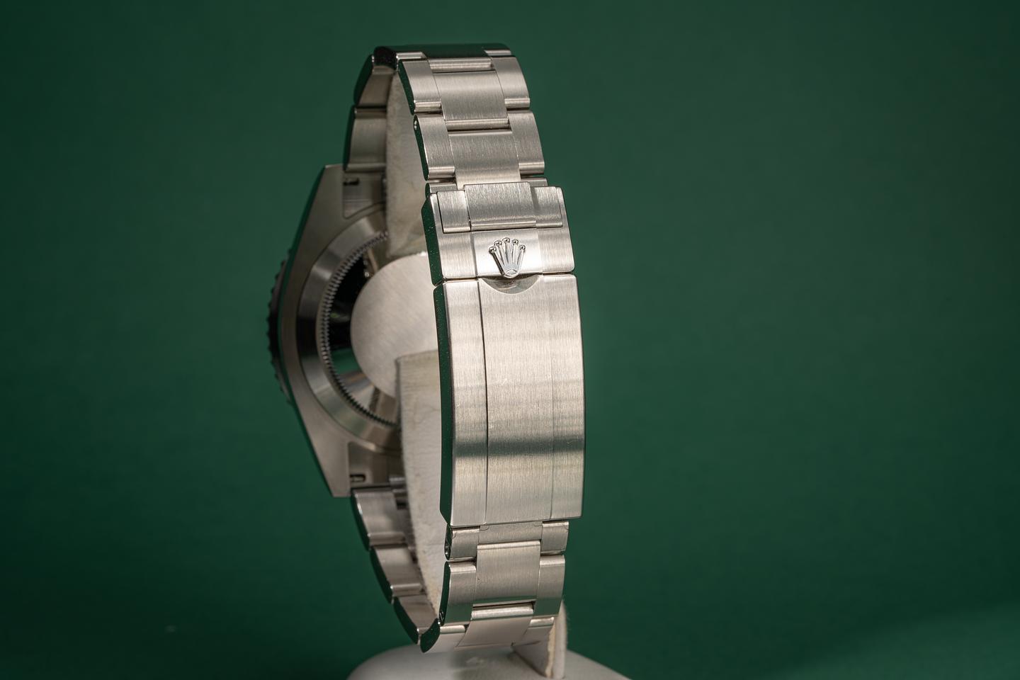 Case: Excellent 41mm case that shows extremely light wear from use. The green ceramic bezel is also excellent and shows extremely light wear.