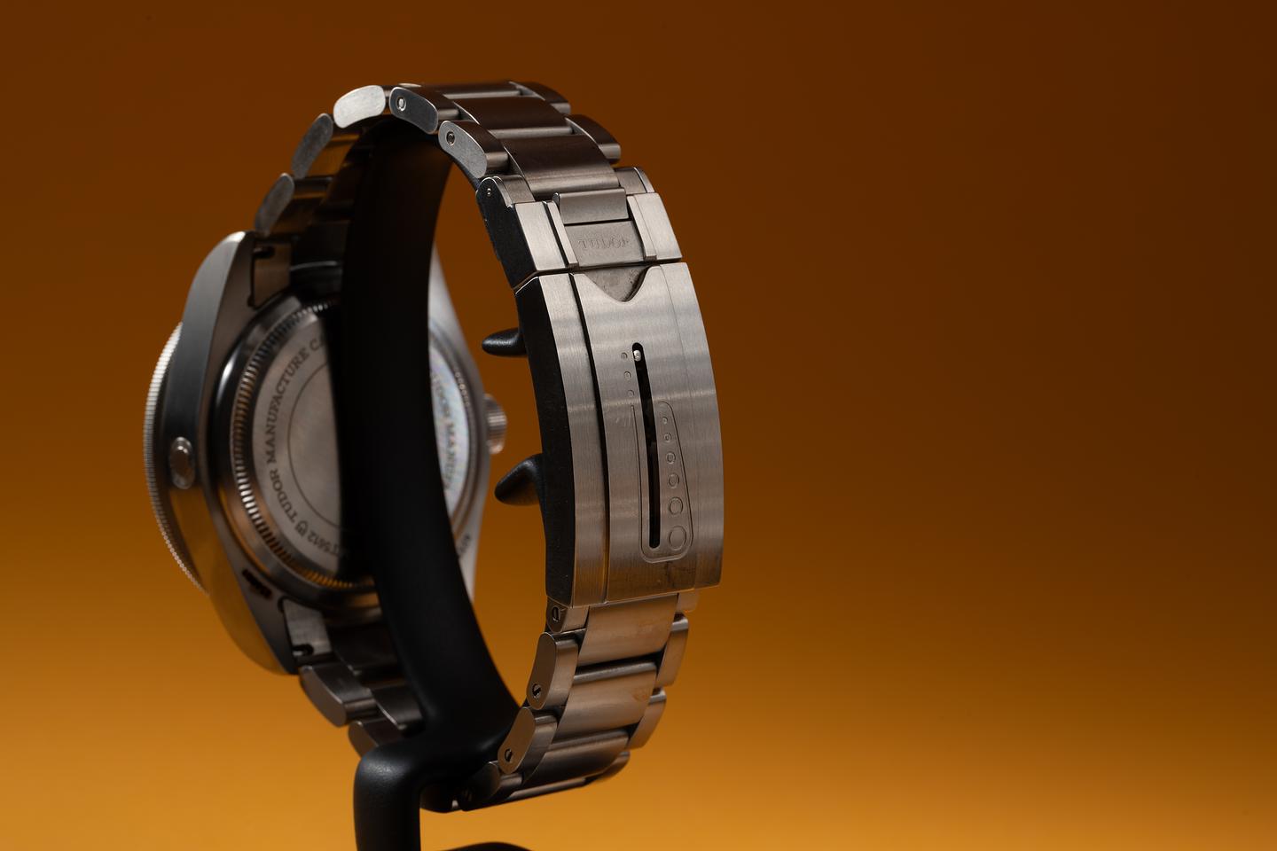 Bracelet: The 11 link Titanium bracelet is excellent showing only very light stretch. The steel clasp show some light wear from use.